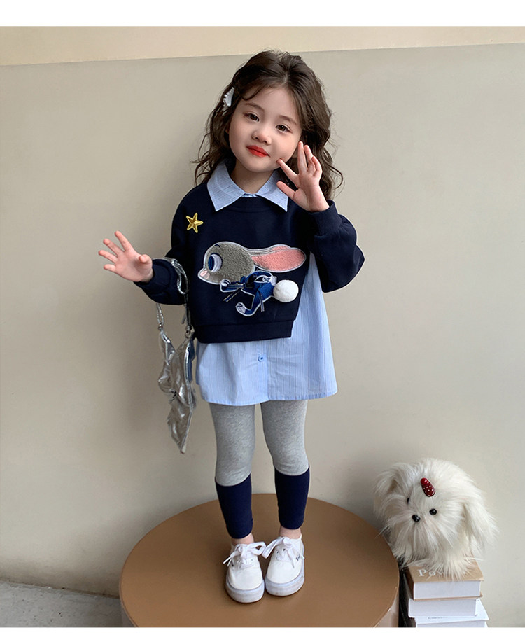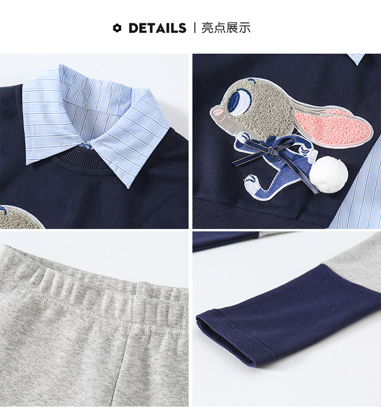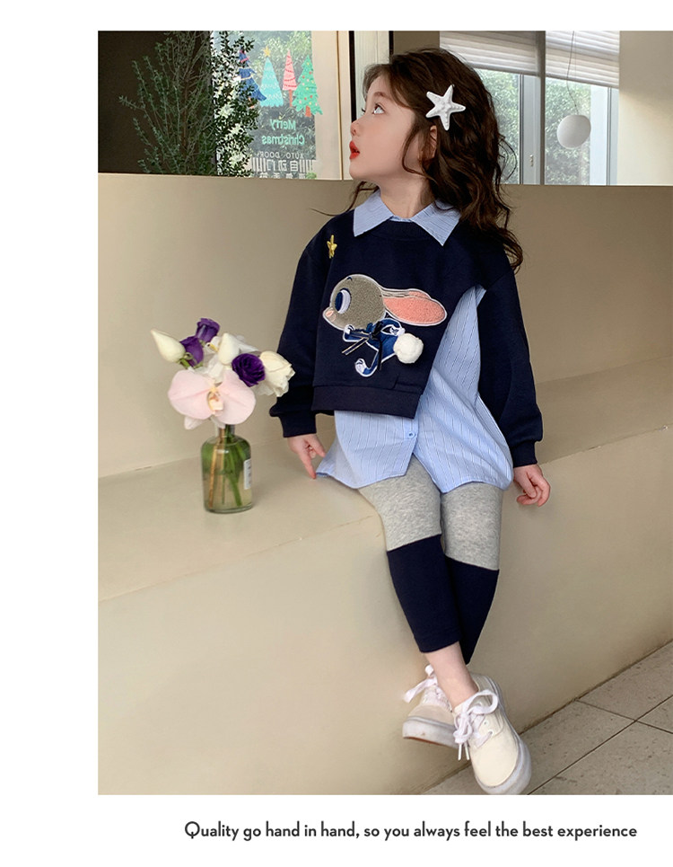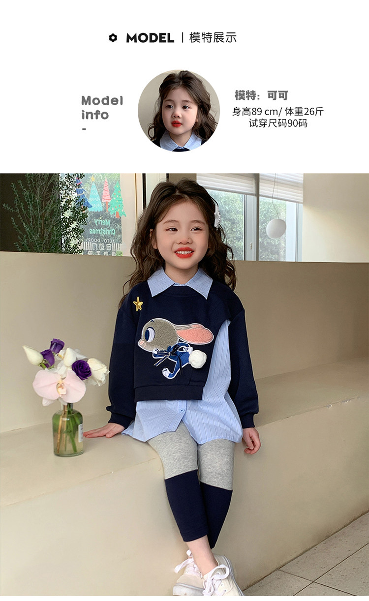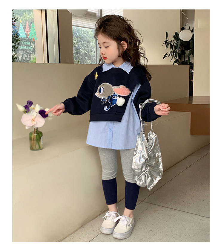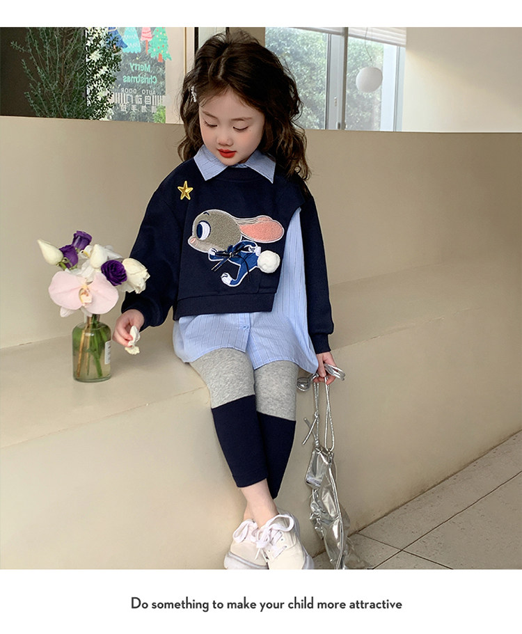 Girls' Rabbit Police Officer Outfit Two-Piece Set, New Spring and Autumn Style for Children, Fashionable and Stylish Judy Cartoon Suit for Baby Girls
