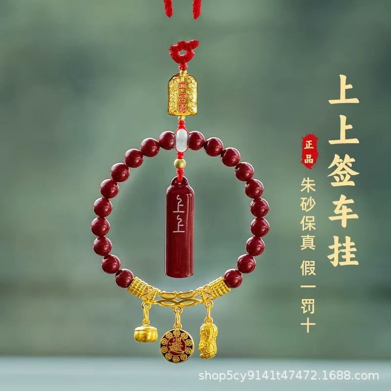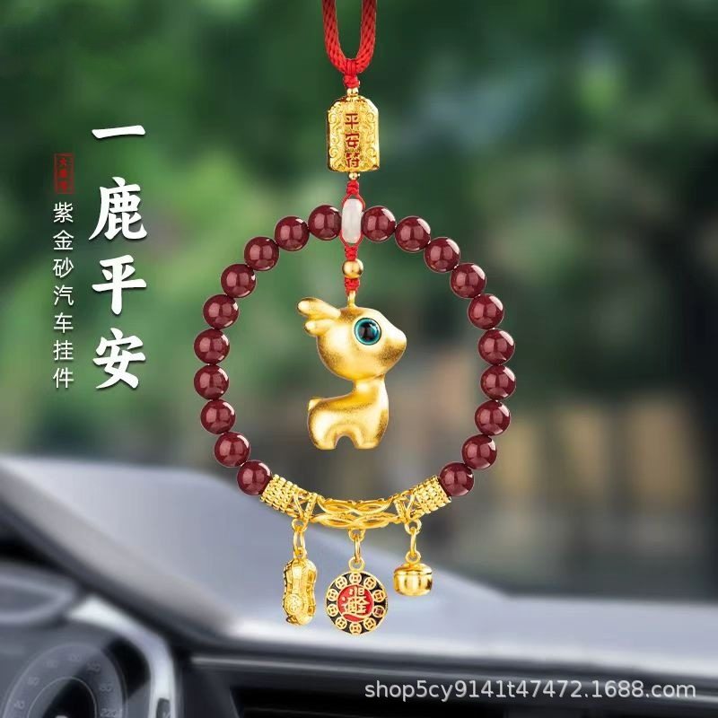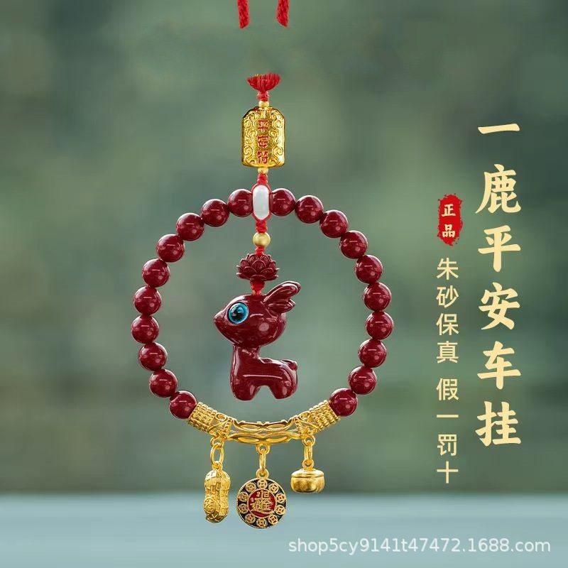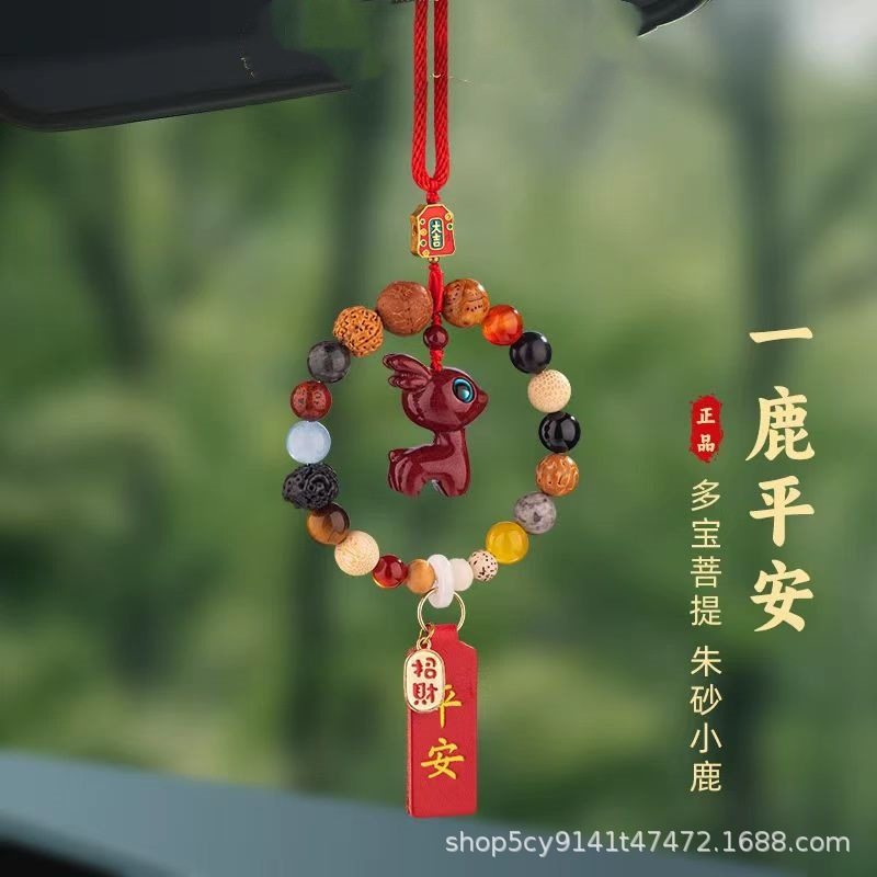 2025 Cinnabar Hanging Ornament Car Pendant Daily Wealth Deer Cinnabar Amulet for Safety and Wealth Rearview Mirror Hanging Decoration