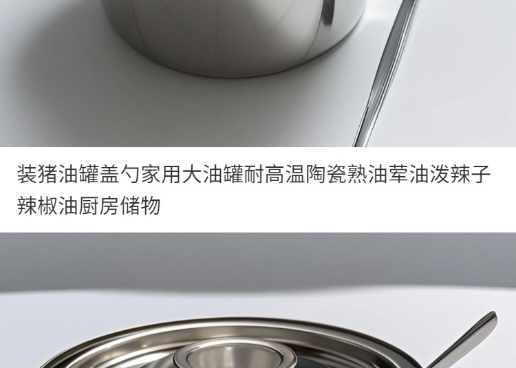 Ceramic Oil Storage Container with Lid and Spoon for Home Use, High Temperature Resistant, for Cooking Oil, Animal Fat, Chili Oil, Kitchen Storage