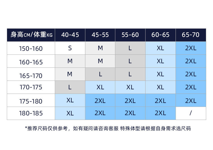 China (cm) 160-165/84-86 165-170 / 88-90 167-172 / 92-96 168-173 / 98-102 170-176 / 106-110