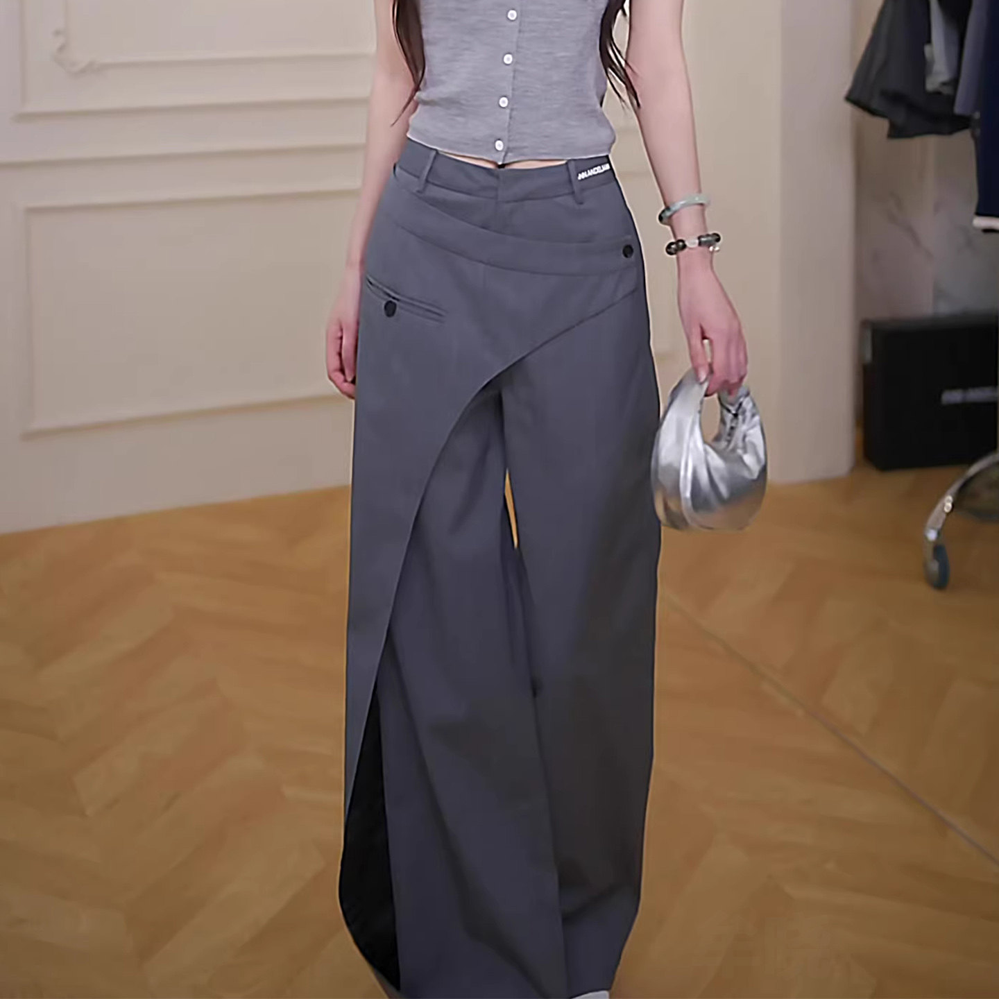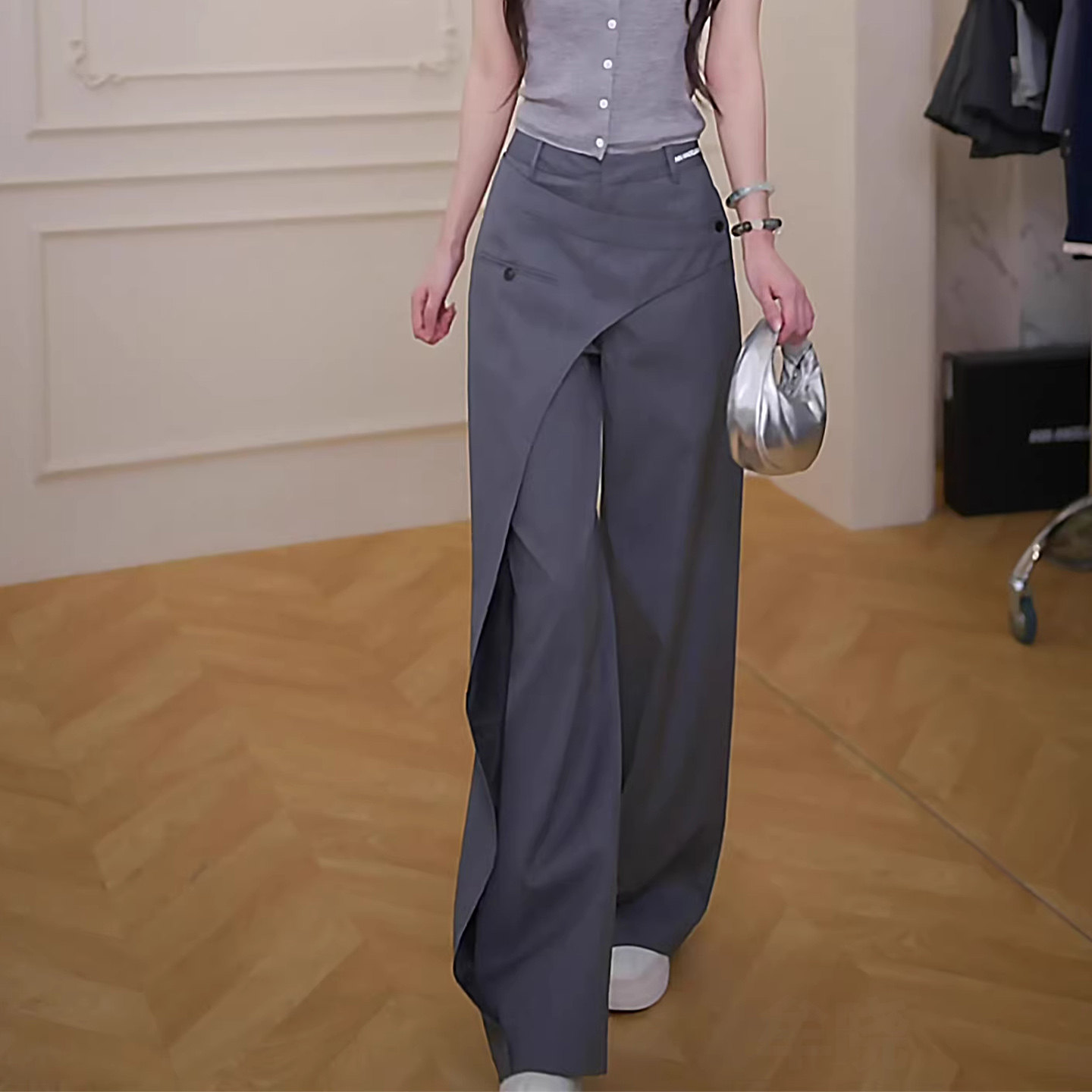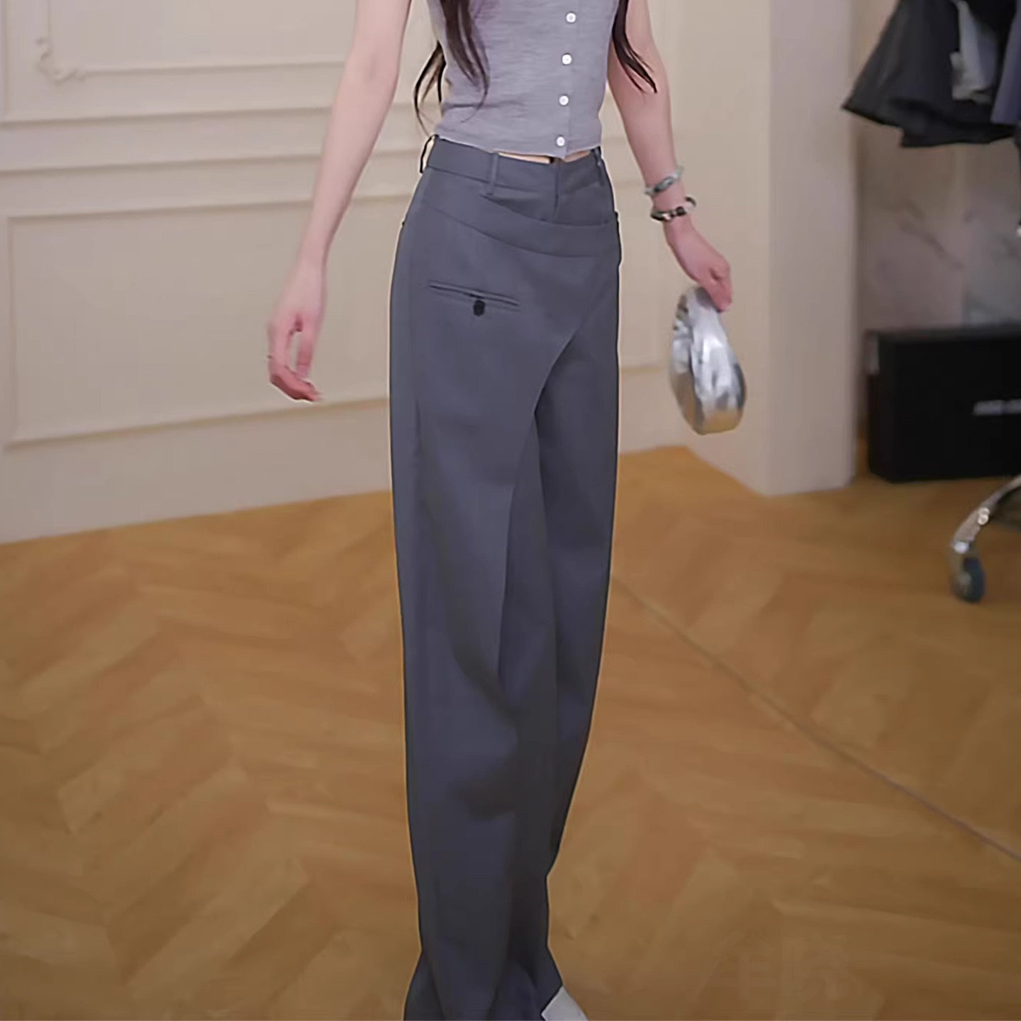 Stylish Gray Suit Pants for Women, Spring 2026 New Style, Plus Size, High-Waisted, Slimming, Drapey, Casual Wide-Leg Pants