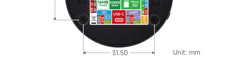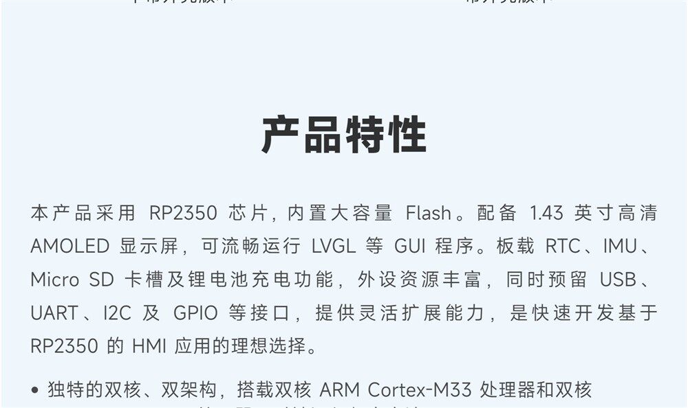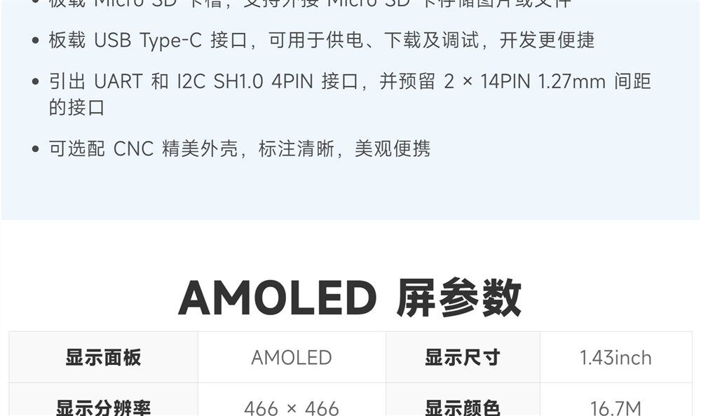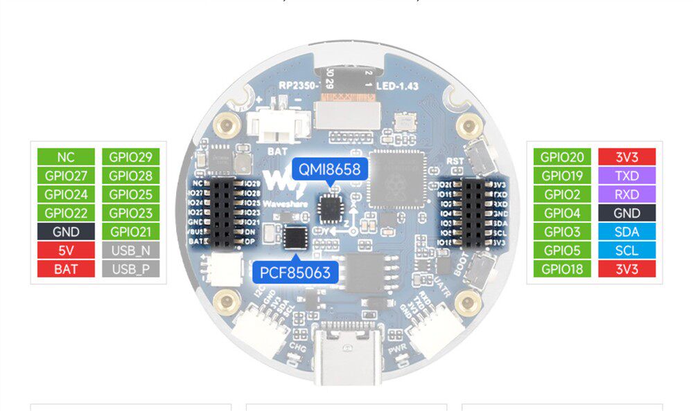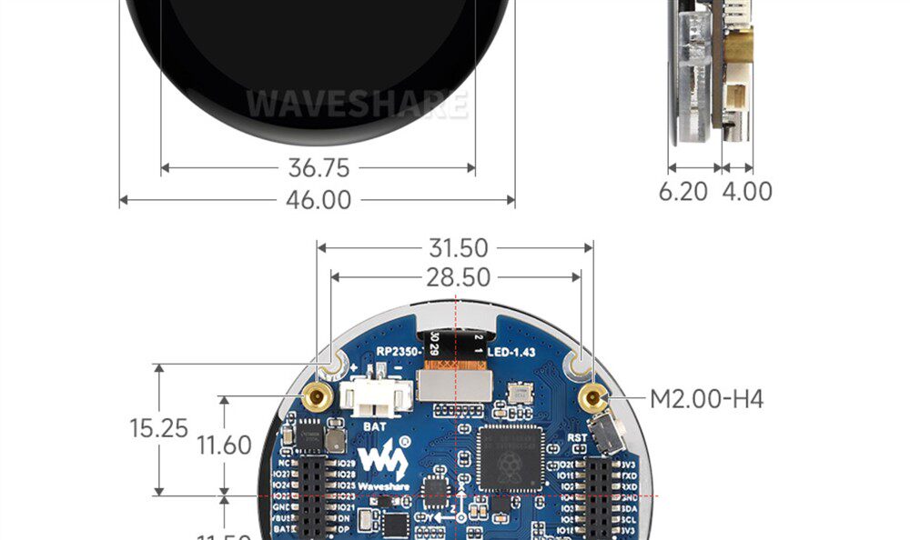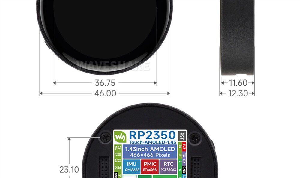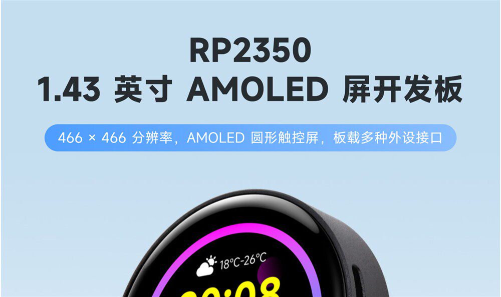 Weixue Rp2350 Microcontroller Development Board 1.43inch Amoled Capacitive Touch Screen Hmi/Lvgl Development