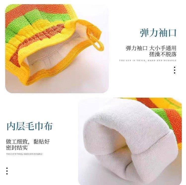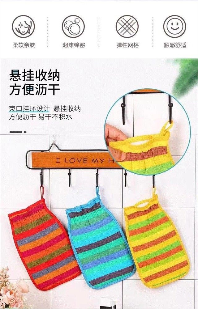 Rainbow Strip Bath Towel for Men and Women, Double-Sided Back Scrubber, Bath Gloves, Exfoliating Coarse Sand Bath Tool, Painless