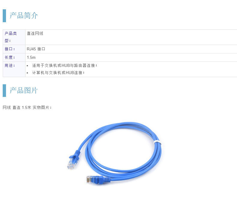 Network Cable with Direct Connection to 1.5m Rj45 Interfaces, Suitable for Connecting Switches or Hubs to Routers