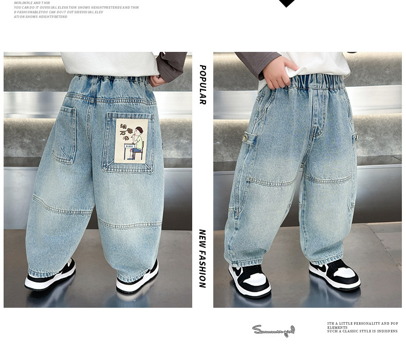 Boys' Spring Straight-Leg Jeans 2026 New Stylish Children's Casual Versatile Pants Trendy Wide-Leg Pants for Toddlers