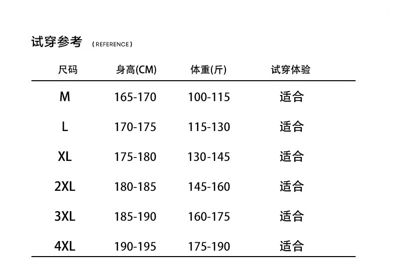 China (cm) 165 / 88-90 170 / 96-98 175 / 108-110 180 / 118-122 185 / 126-130