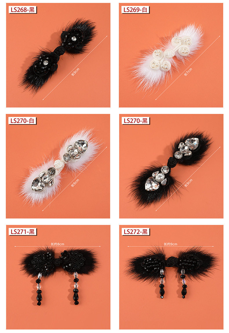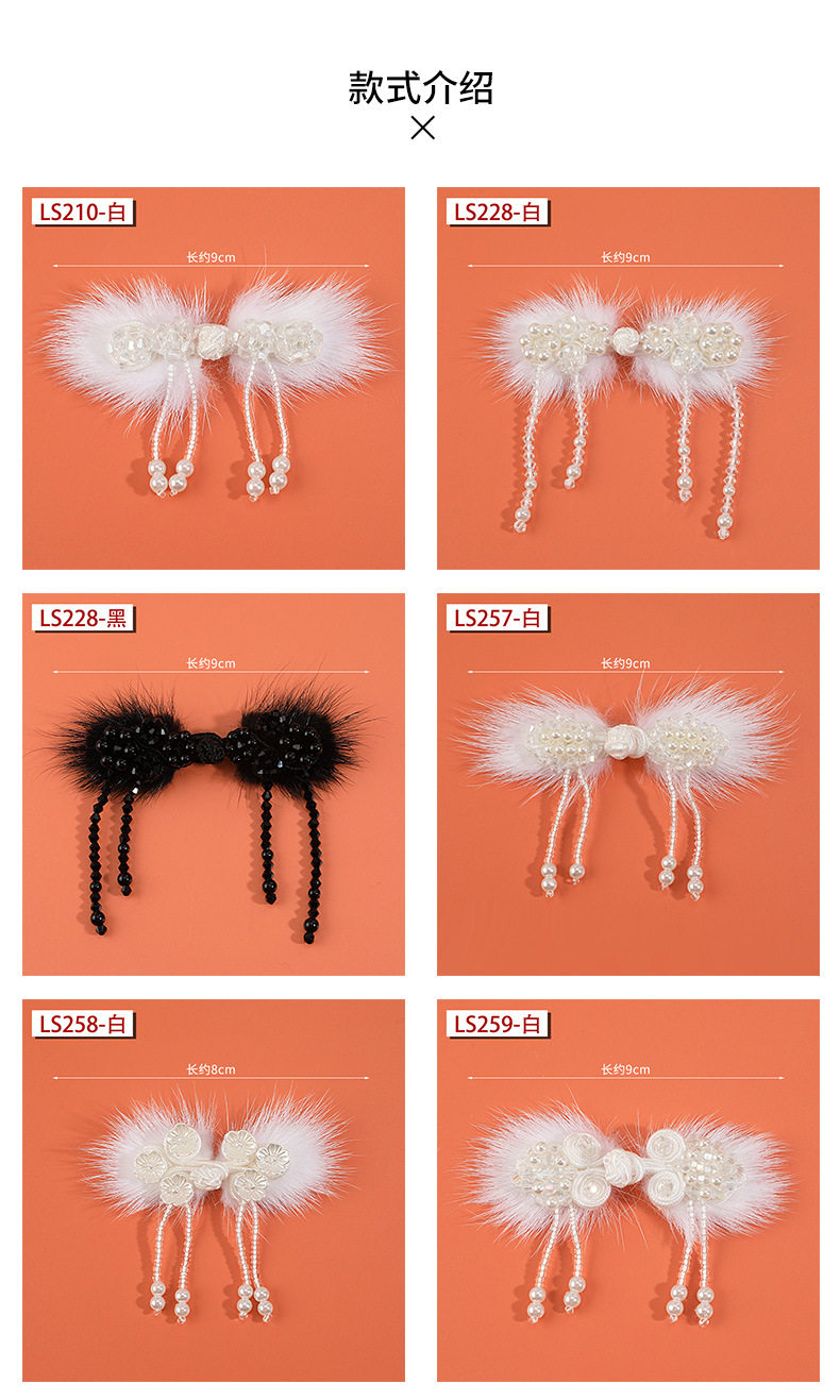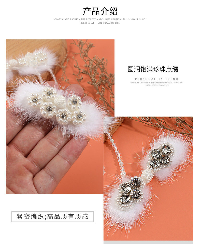 Qipao Button with Pearl Crystal Hanging Chain, Tassel Plate Button, Mink Fur Decorative Button, Chinese-Style Dress, National Style, National Trend, Handmade Button