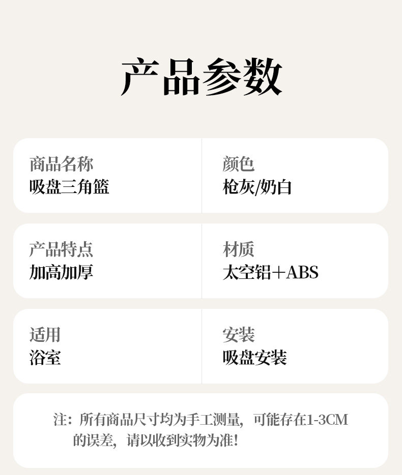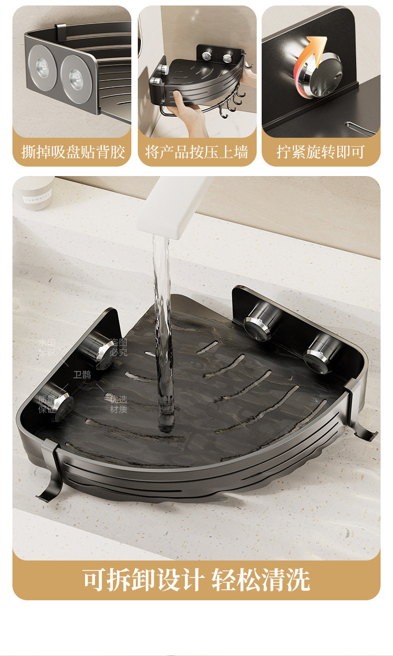 German High-End Suction Cup Bathroom Storage Rack Triangle Basket, No-Drill Corner Shelf for Bathroom and Toilet