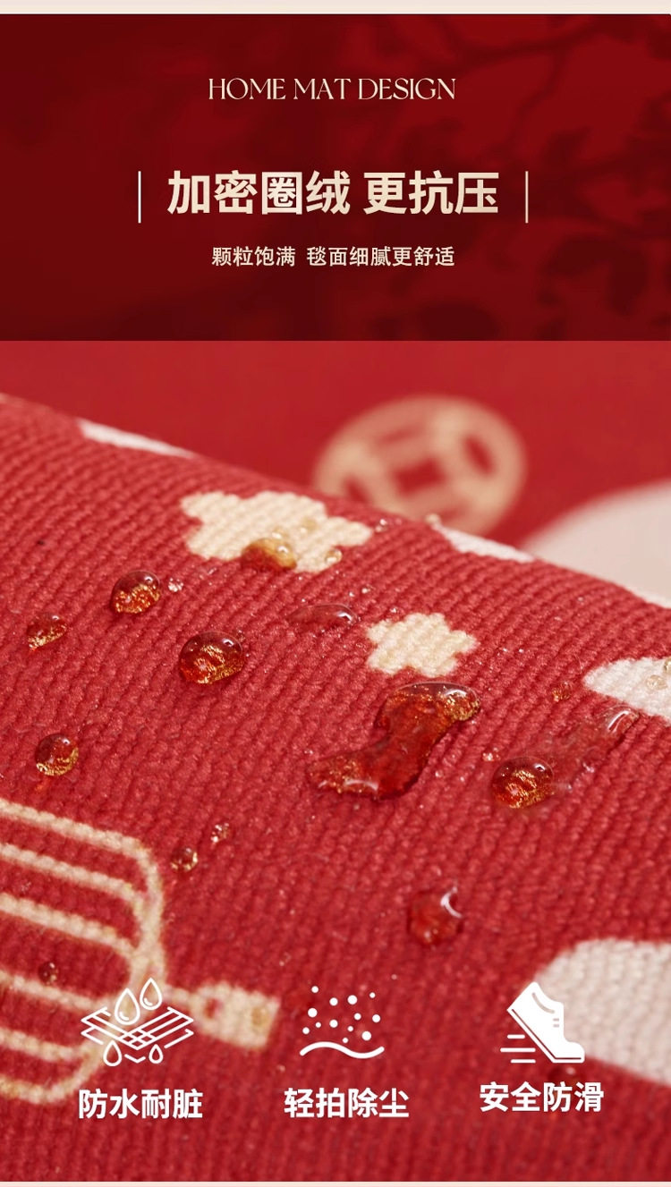 Red Year of the Horse Loop Pile Doormat, Stain-Resistant and Easy to Maintain, Entrance Mat, Outdoor Front Door Non-Slip Mat