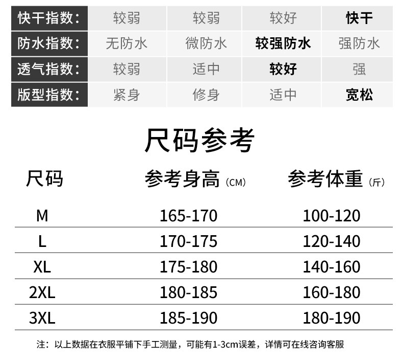 China (cm) 165 / 88-90 170 / 96-98 175 / 108-110 180 / 118-122 185 / 126-130