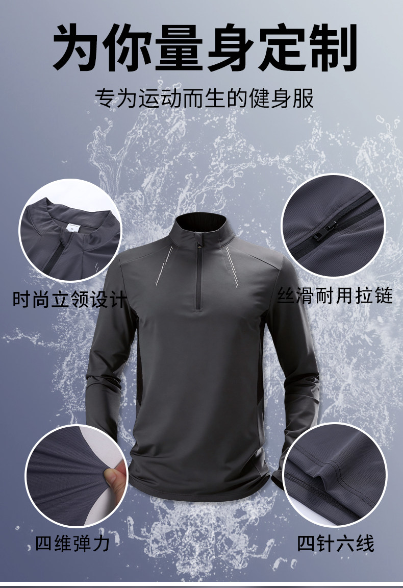 Quick-Drying Long-Sleeved Fitness Clothes for Men, Loose Half-Zip Training Clothes, Running High-Elastic Breathable Long-Sleeved Sports T-Shirts