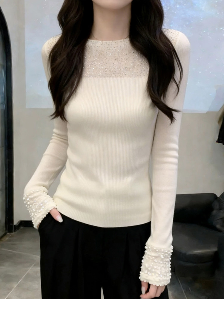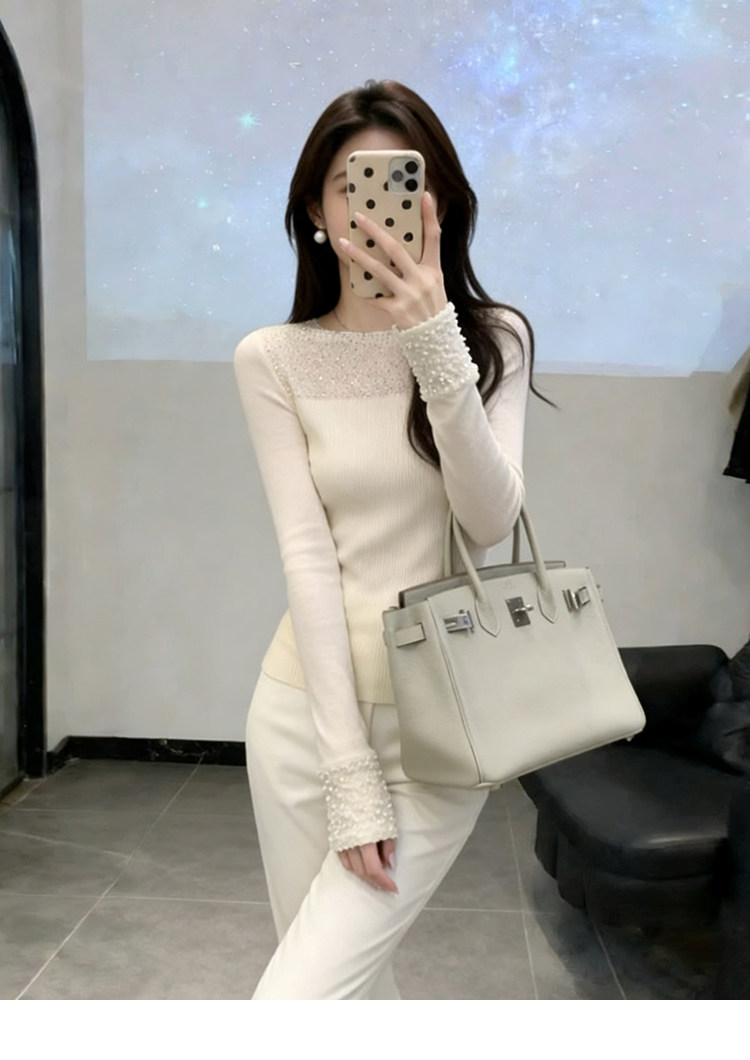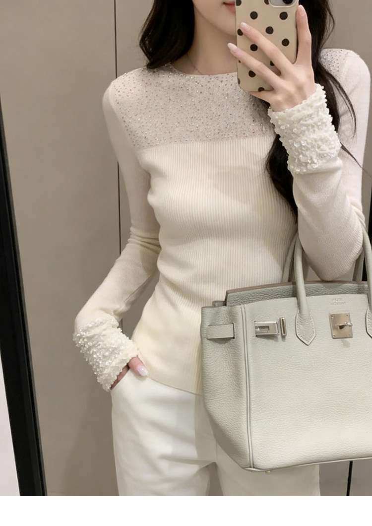 French glitter hot diamond slim fit sweater for women in autumn and winter, stunning and beautiful bottoming shirt, high-end inner top