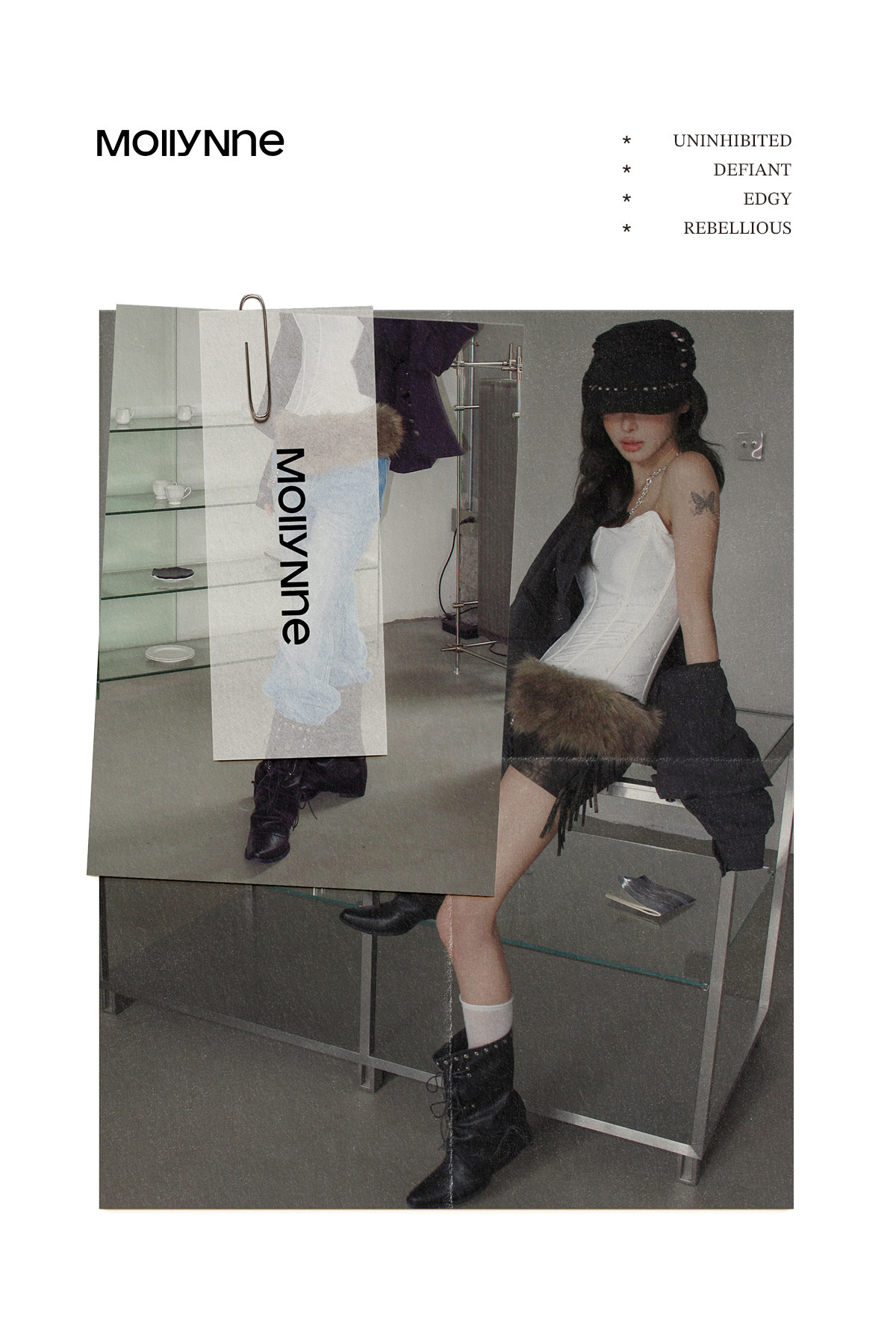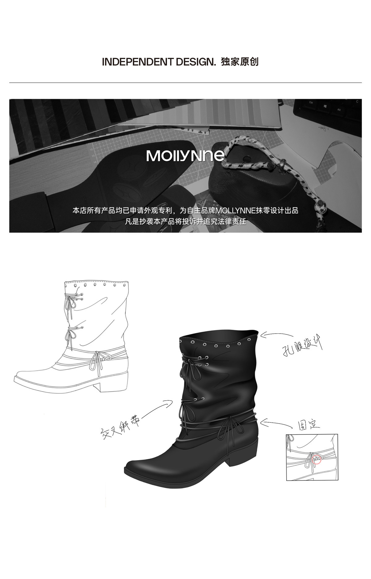 Mollynne original design short boots black pointed mid-calf slim boots women's punk style pile boots fashion boots