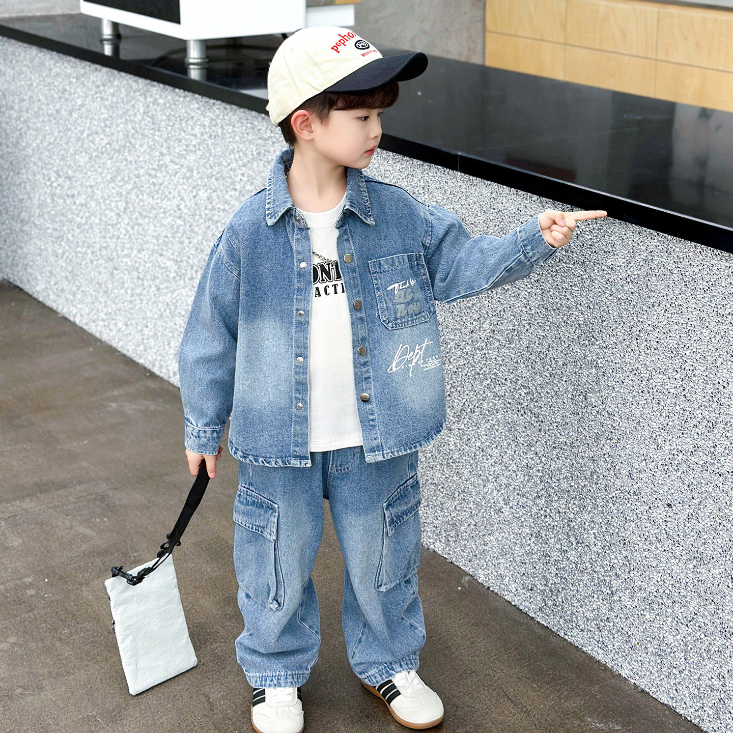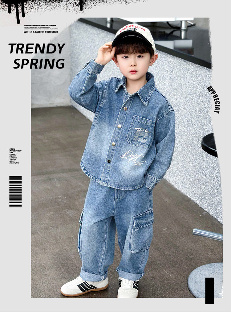 Boys' Denim Suit, Trendy and Stylish, 2026 New Spring Collection, Korean Style, Eye-Catching Children's Jacket, Spring and Autumn Clothing