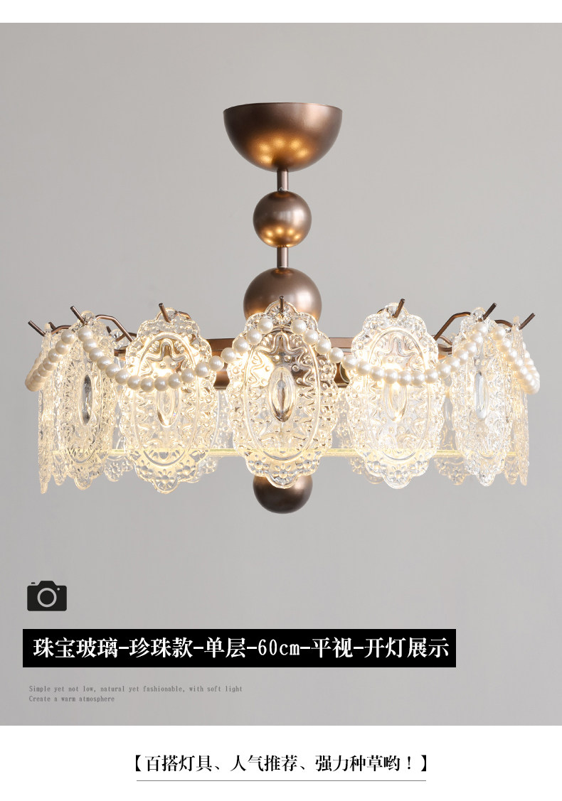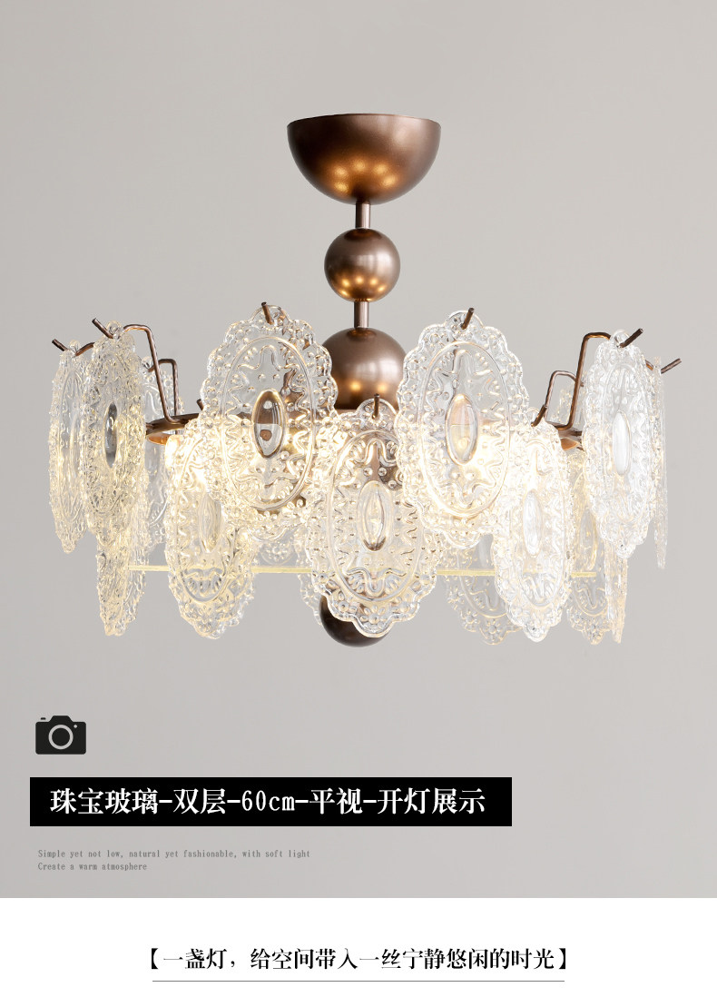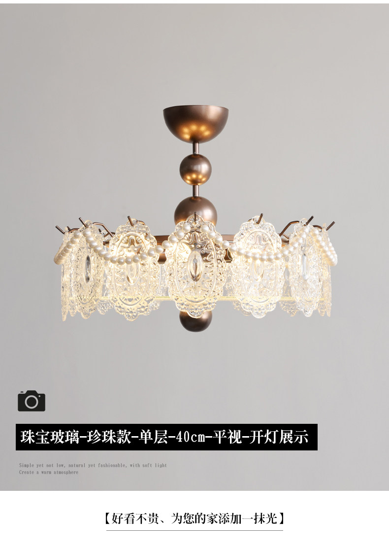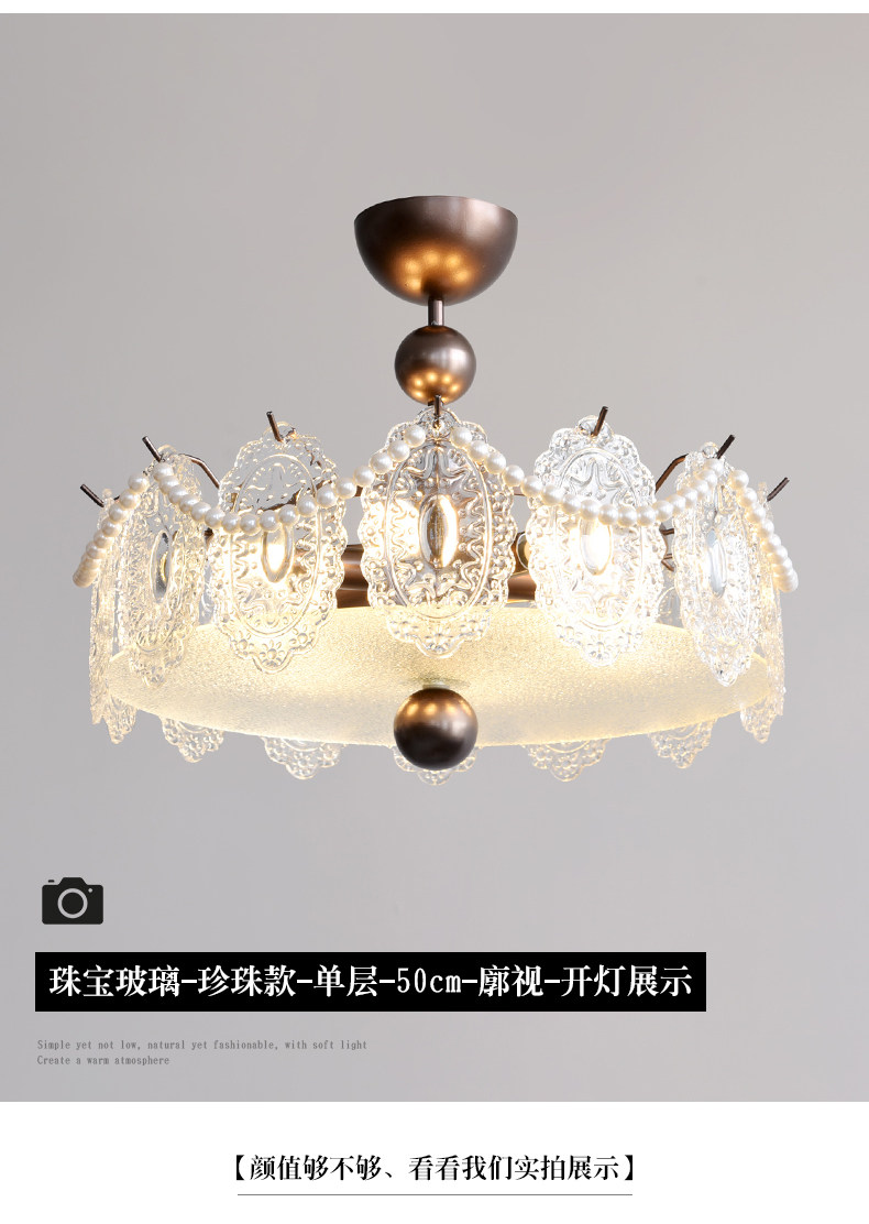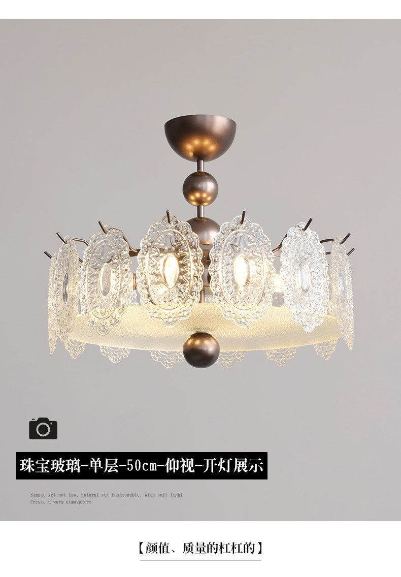 French-Style Vintage Chandelier for Bedroom and Study, American Retro Light Luxury Glass Art, 2026 New Model Study Lighting