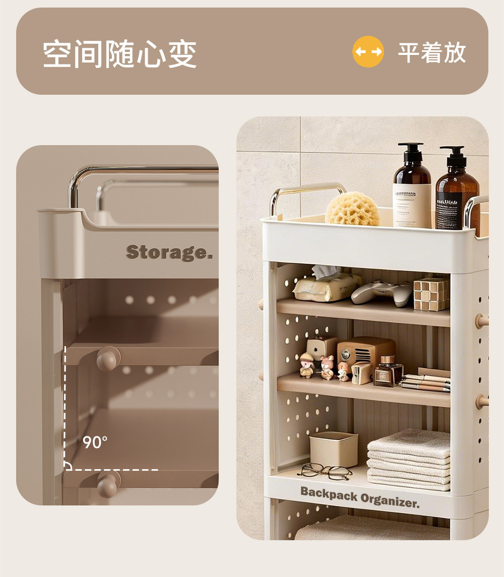 Bathroom rack floor-standing removable toilet storage rack bathroom trolley sandwich storage cabinet multi-layer shelf