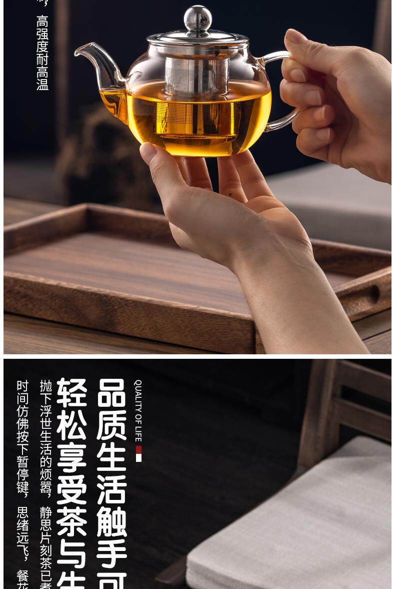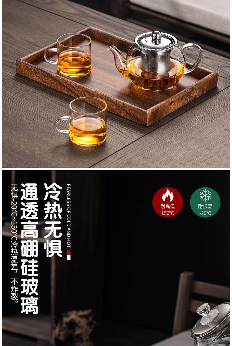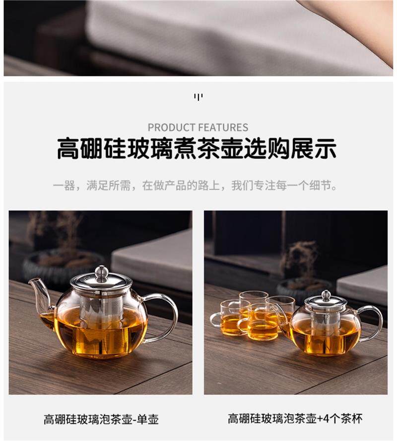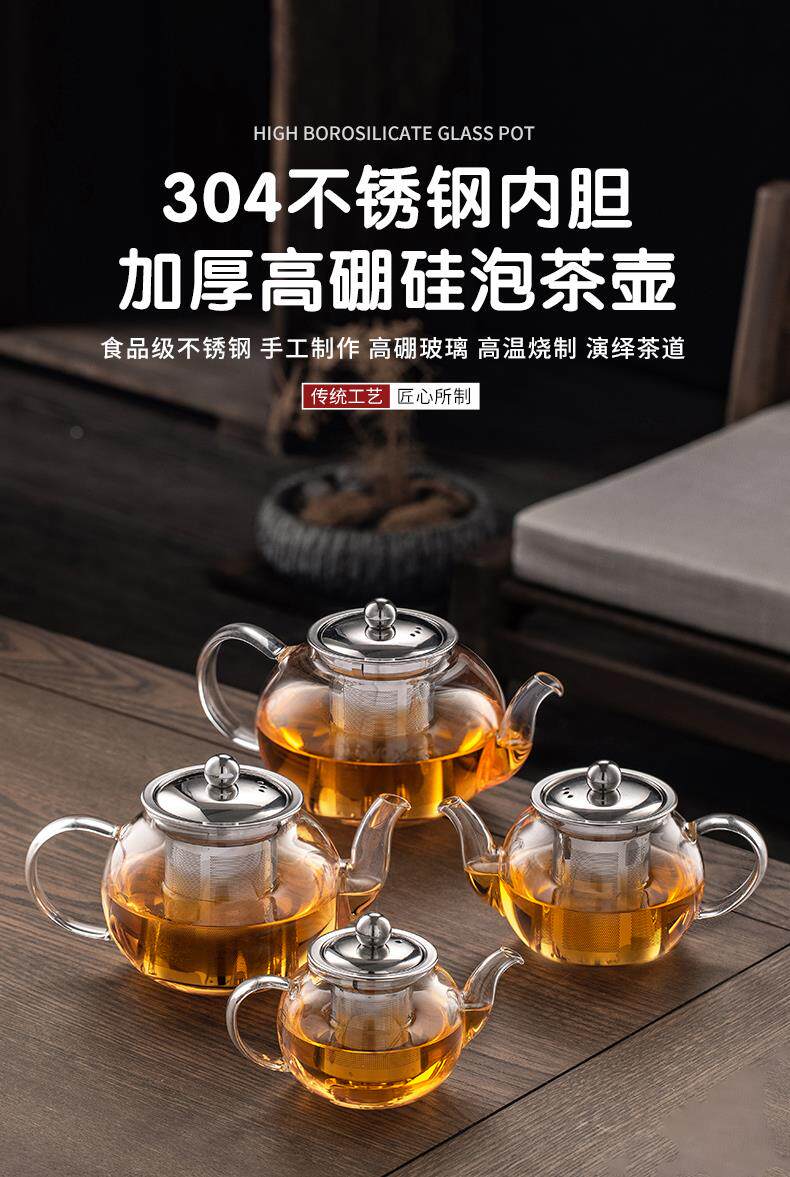 Thickened high-temperature-resistant glass teapot for tea household stainless steel filter liner tea maker Kung Fu teapot large capacity