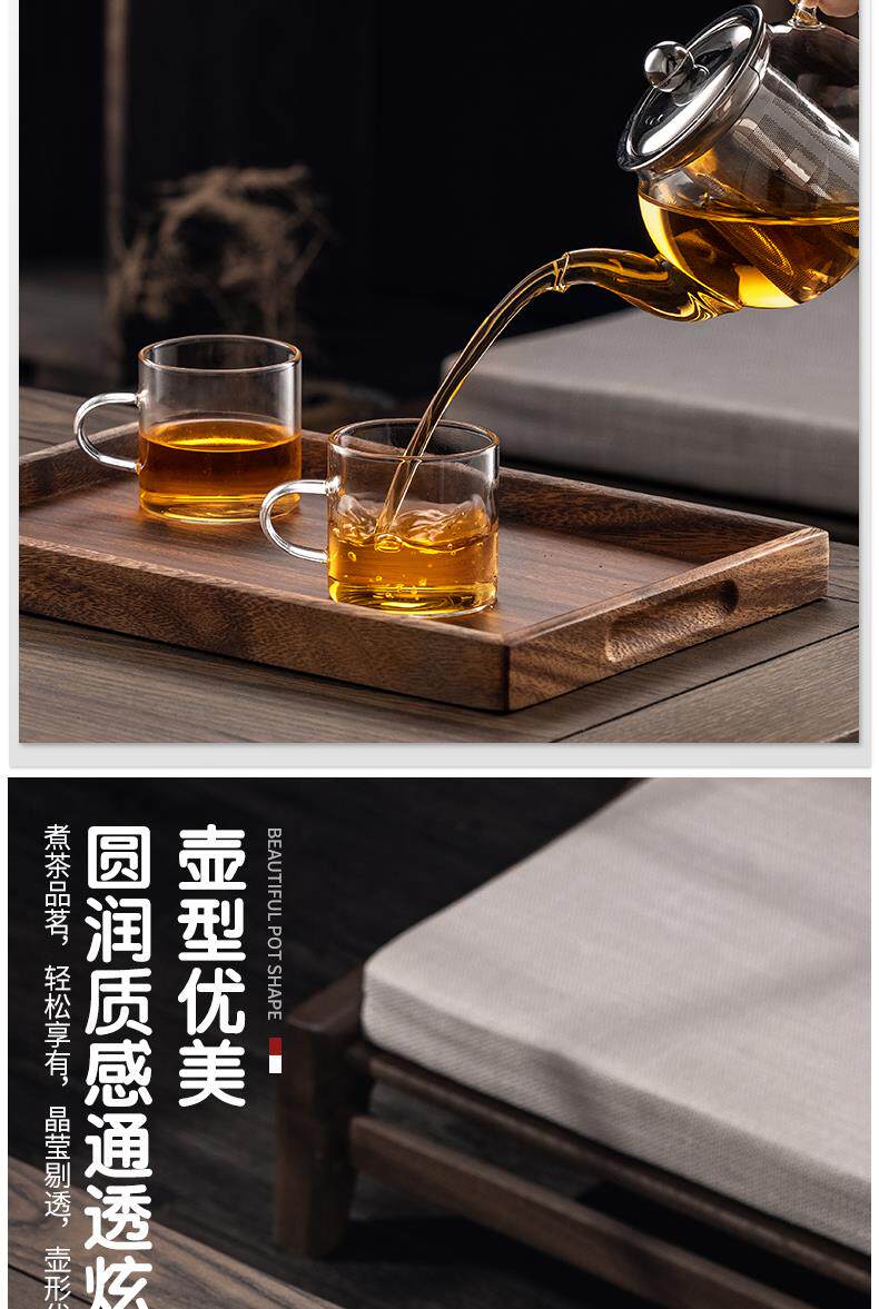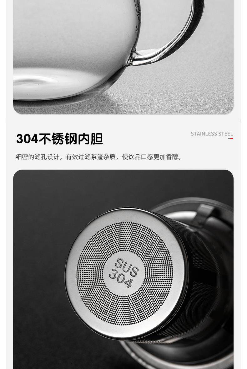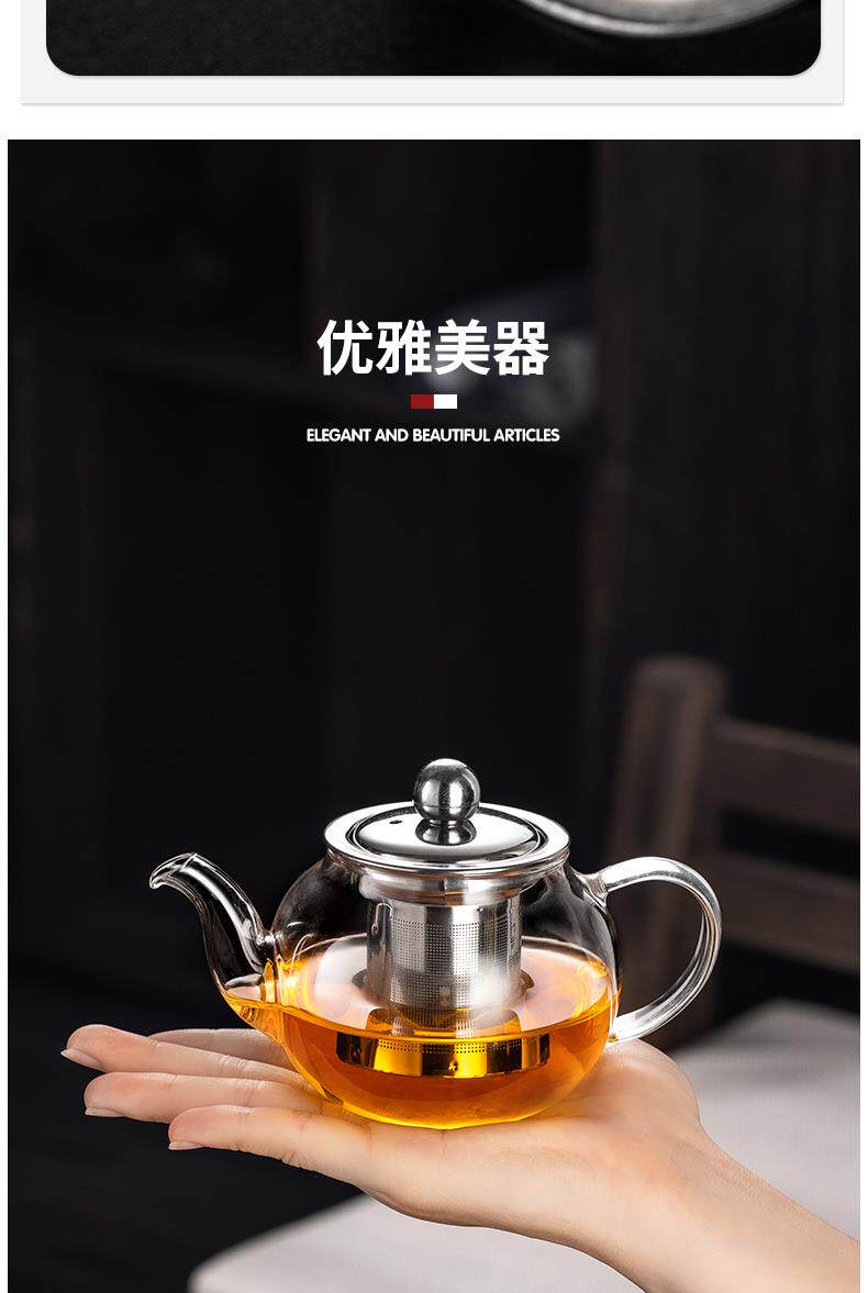 Thickened high-temperature-resistant glass teapot for tea household stainless steel filter liner tea maker Kung Fu teapot large capacity