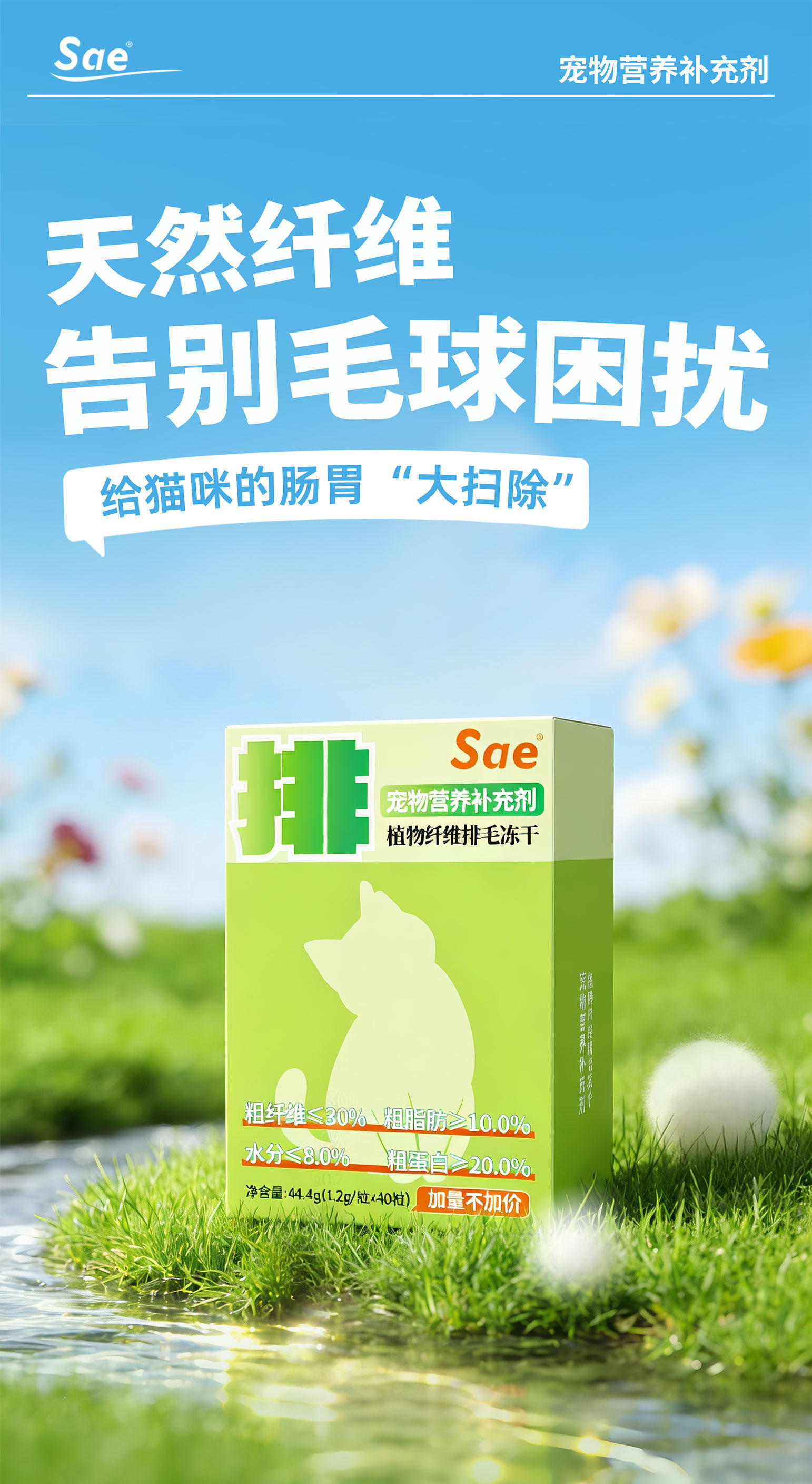 Sae Fiber Hair Removal Formula Is Freeze-Dried and Genuine, with Multiple Hair Removal Formulas, Gentle on Hair Removal, Highly Palatable, Convenient for Feeding, and Versatile