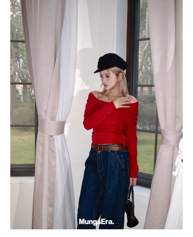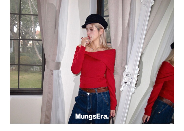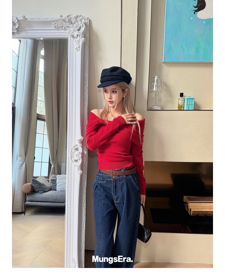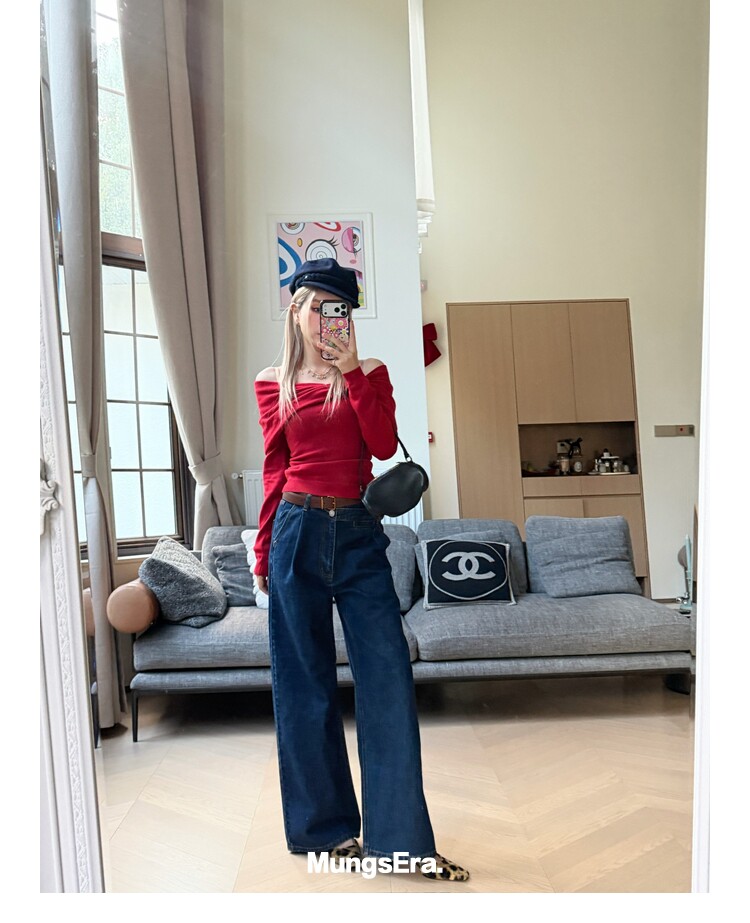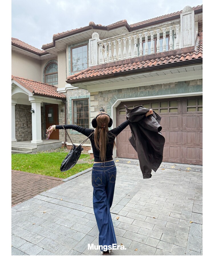 Mungsera "Cross-Waist" Ivy Casual Deep Blue Mid-Low Waist Denim Wide-Leg Pants Versatile Slimming Retro Style