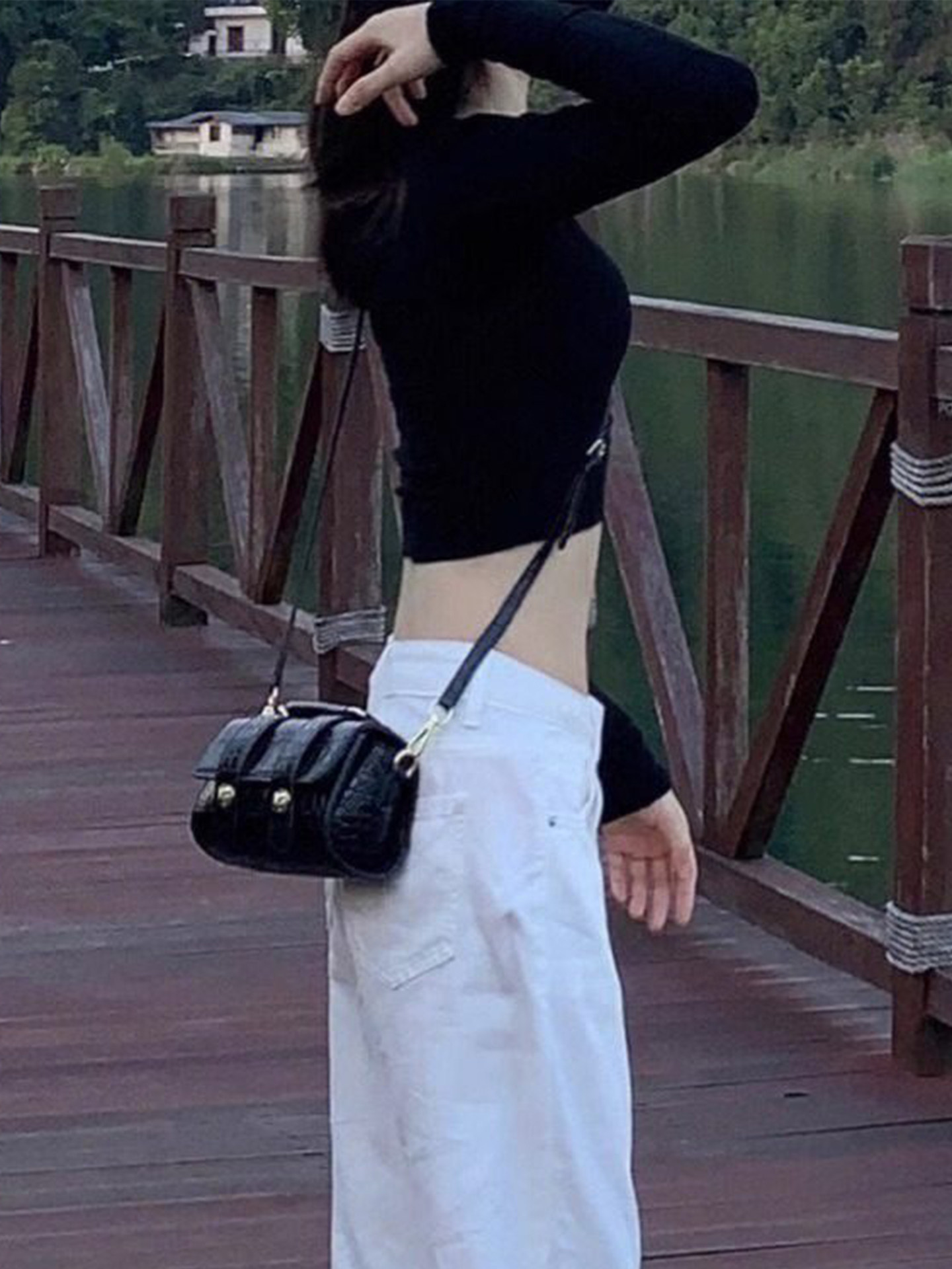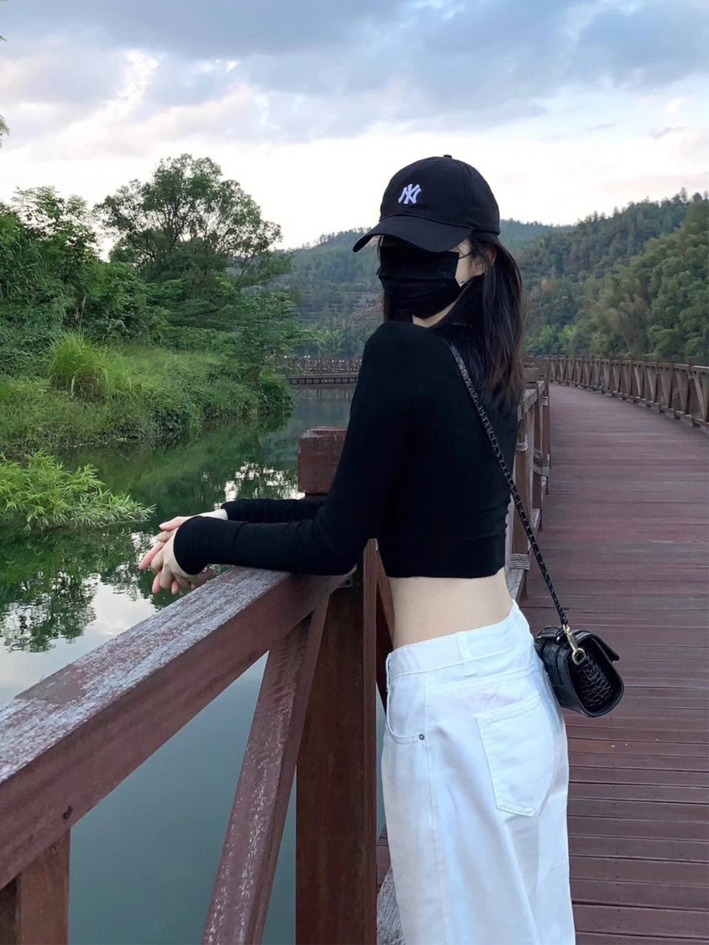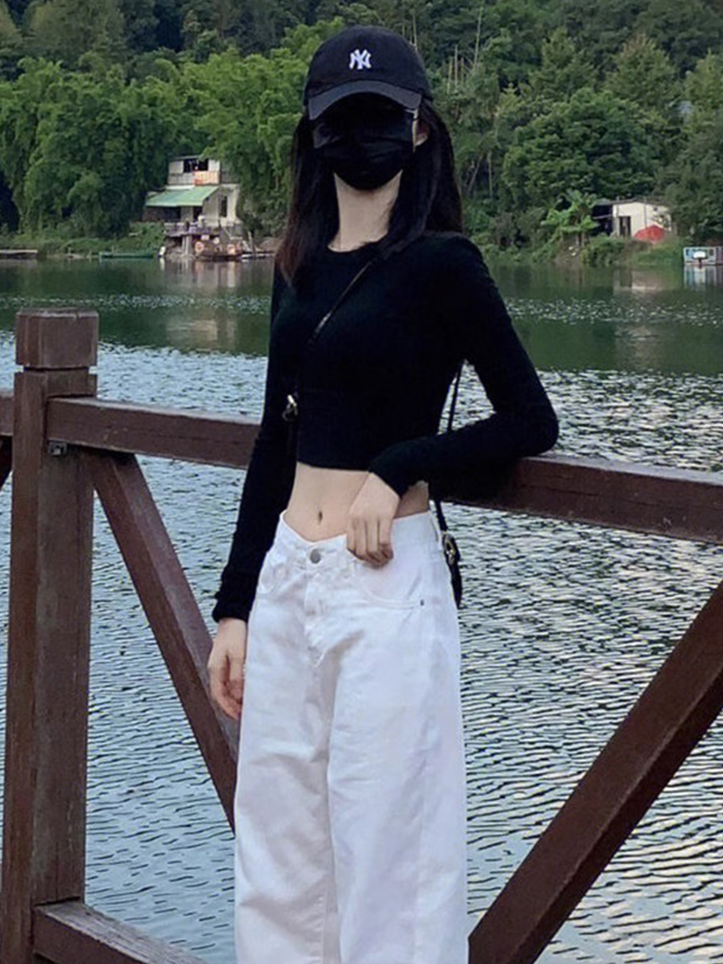 Petite Spicy Girl Long-Sleeve Cropped T-Shirt for Women, Spring 2026 New Style, Simple Versatile Slim-Fit Crop Top
