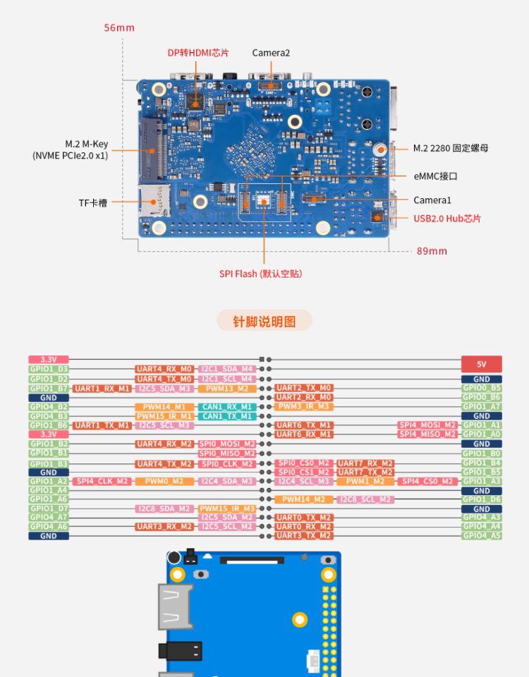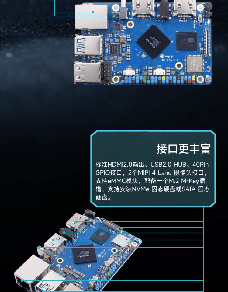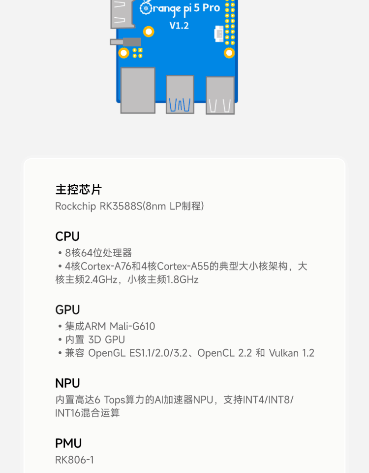 5Pro Chip Rk3588S with 4G/8G/16G Memory Options and a Main Frequency of up to 2.4Ghz Orange Pi