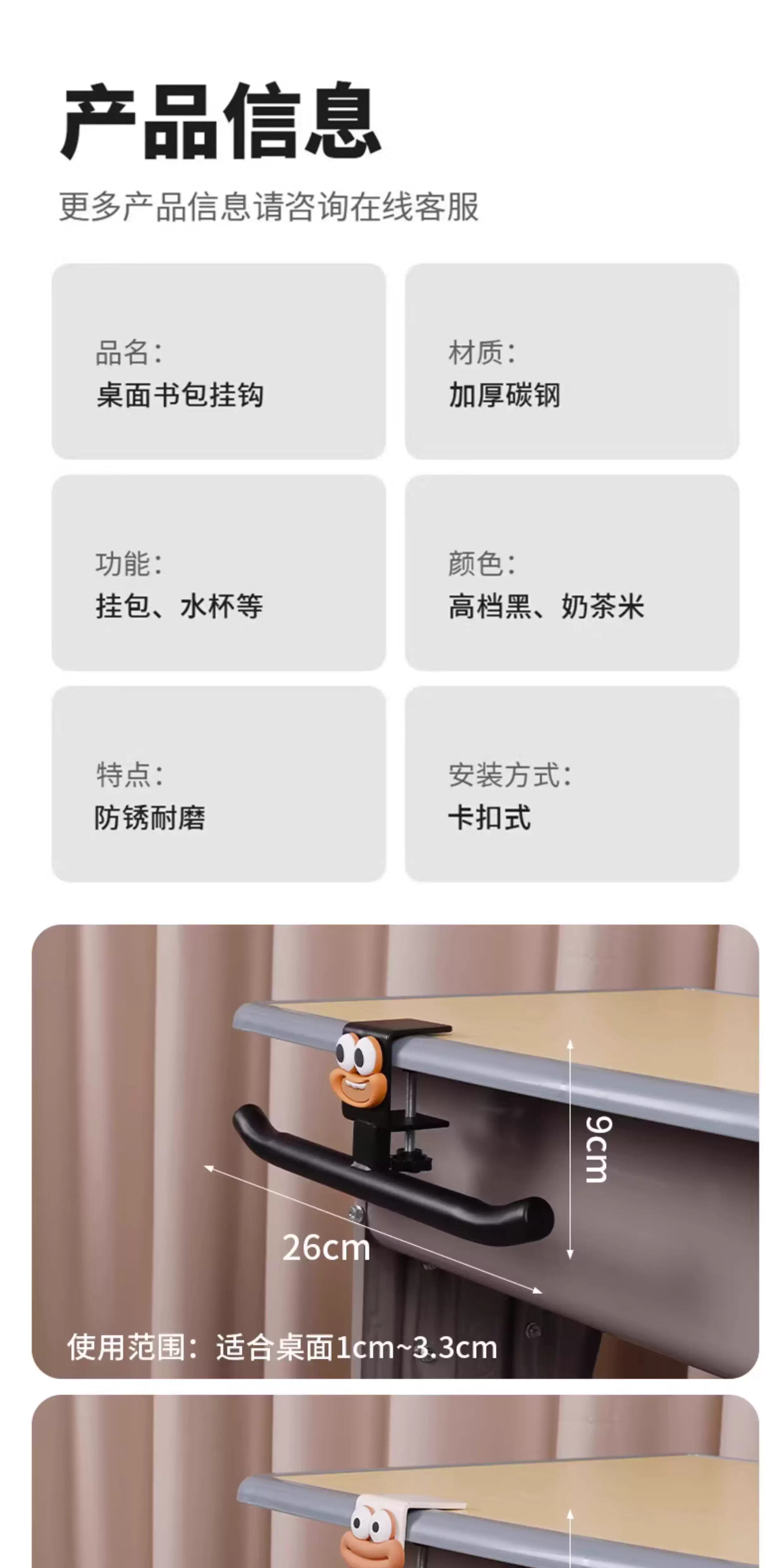 School bag hook student desk side bag hanging artifact movable water cup umbrella hook classroom desk side bag hanging rod