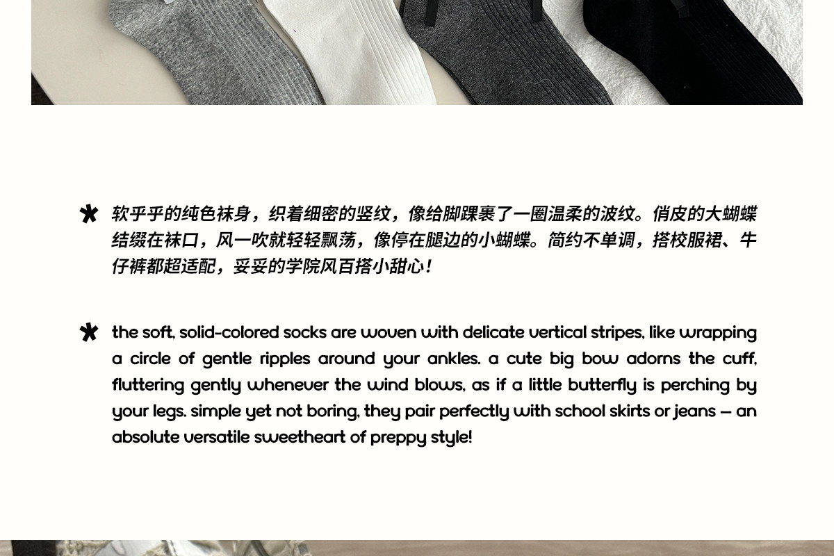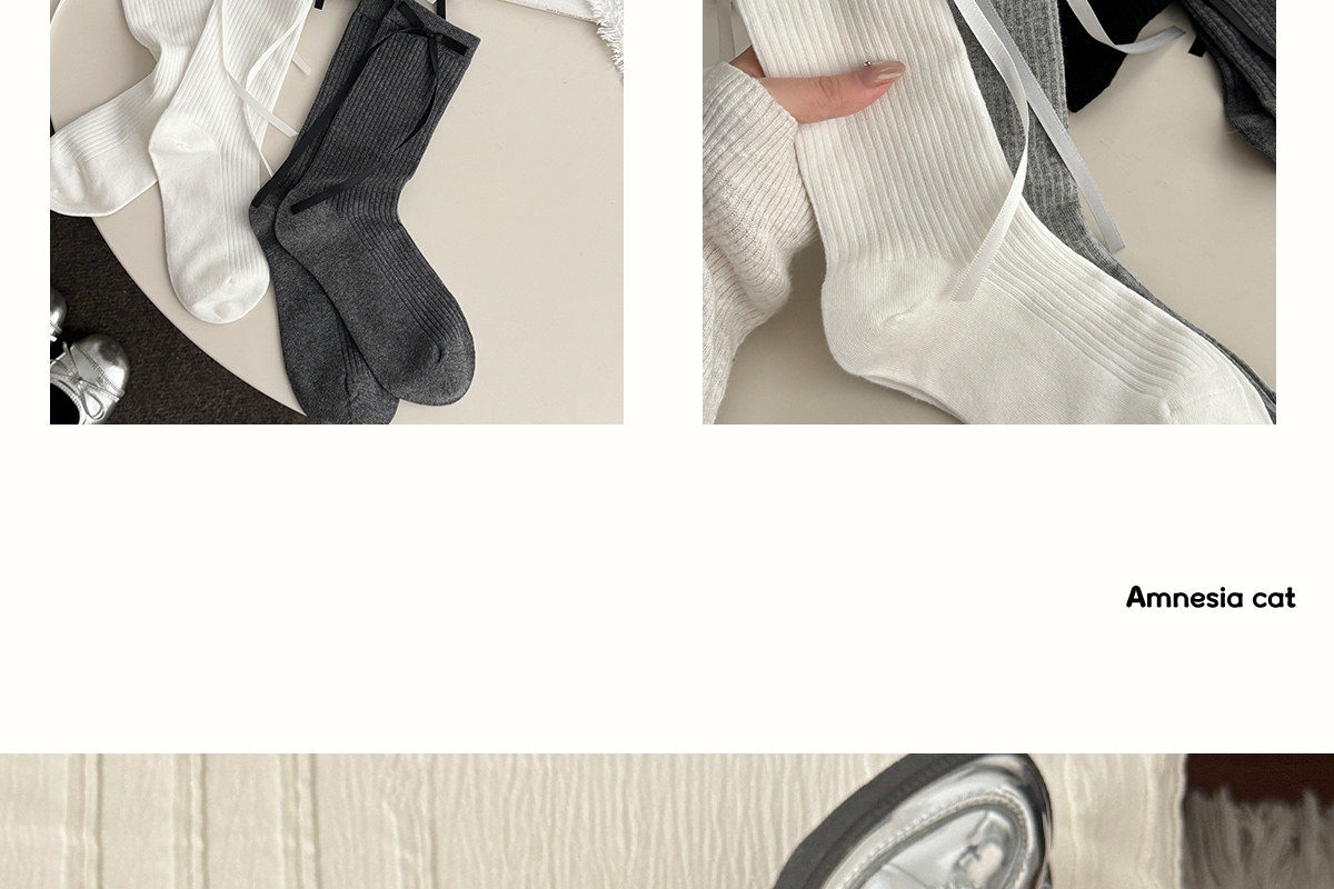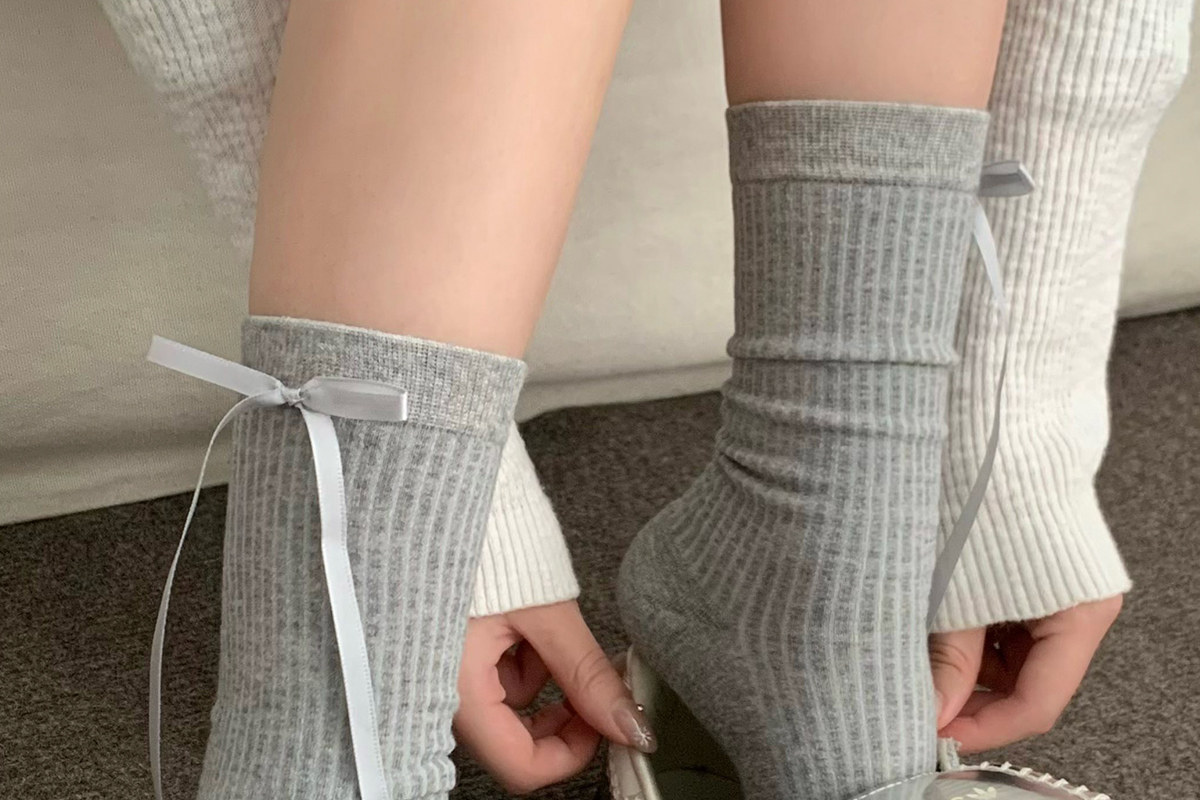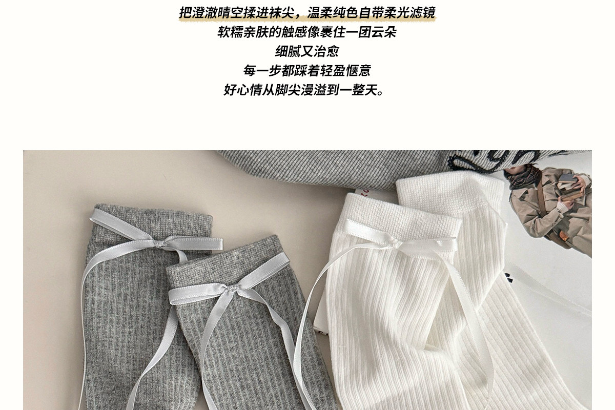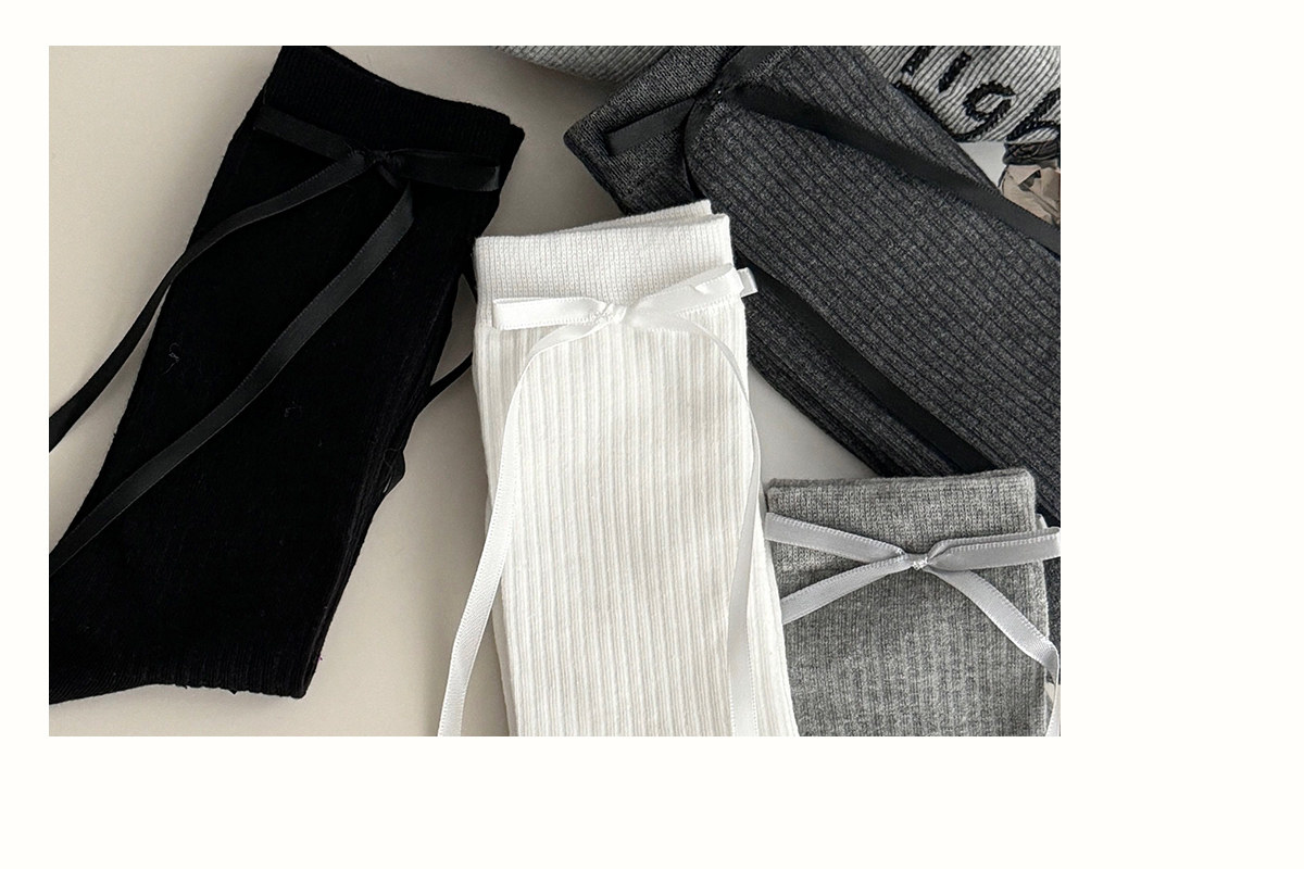 Bow socks for women, spring and autumn pure cotton mid-calf socks, ins trendy ballet style pile socks, autumn and winter sweet stockings