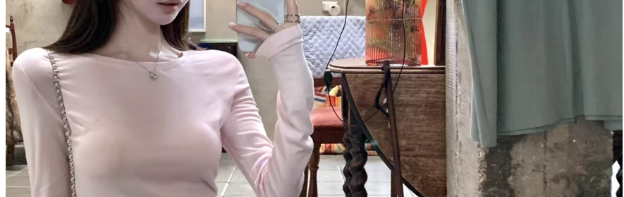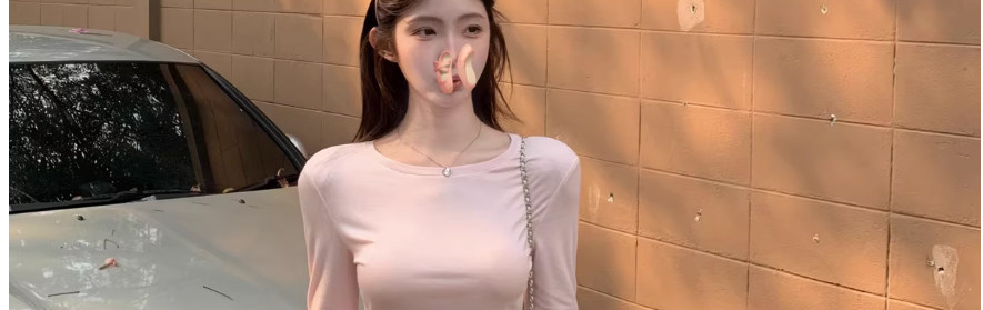 Round Neck Long-Sleeved T-Shirt Base Shirt for Women Spring 2026 New Thin Style Solid Color Simple Casual Waist-Cinching Slimming Top