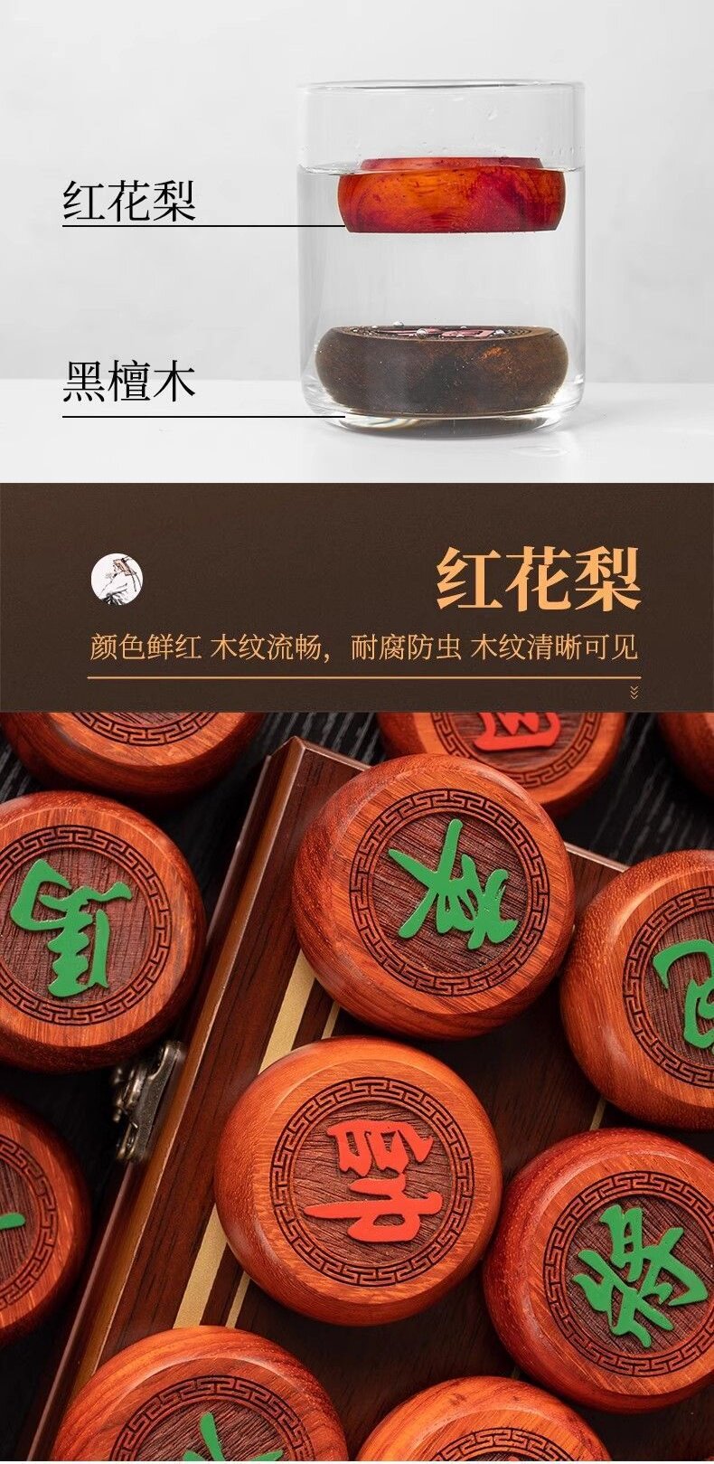 Chinese Chess Set with Board, Made of Redwood, Suitable for Children and Adults, High-End Portable Red Rosewood Chess Pieces, Ideal for Gift-Giving