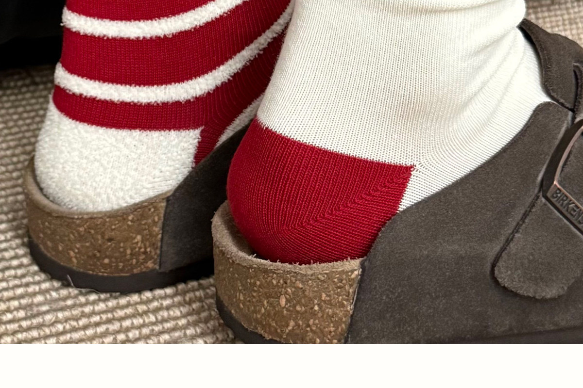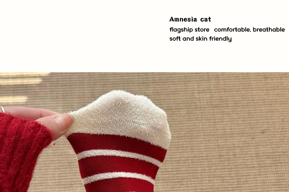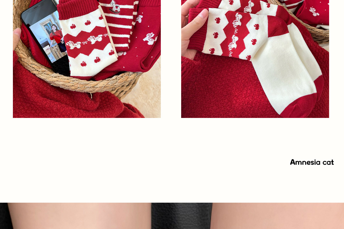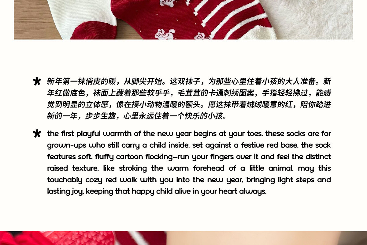 Zodiac year red socks women's autumn and winter pure cotton mid-calf socks Year of the Horse cartoon striped stockings cute festive pile socks
