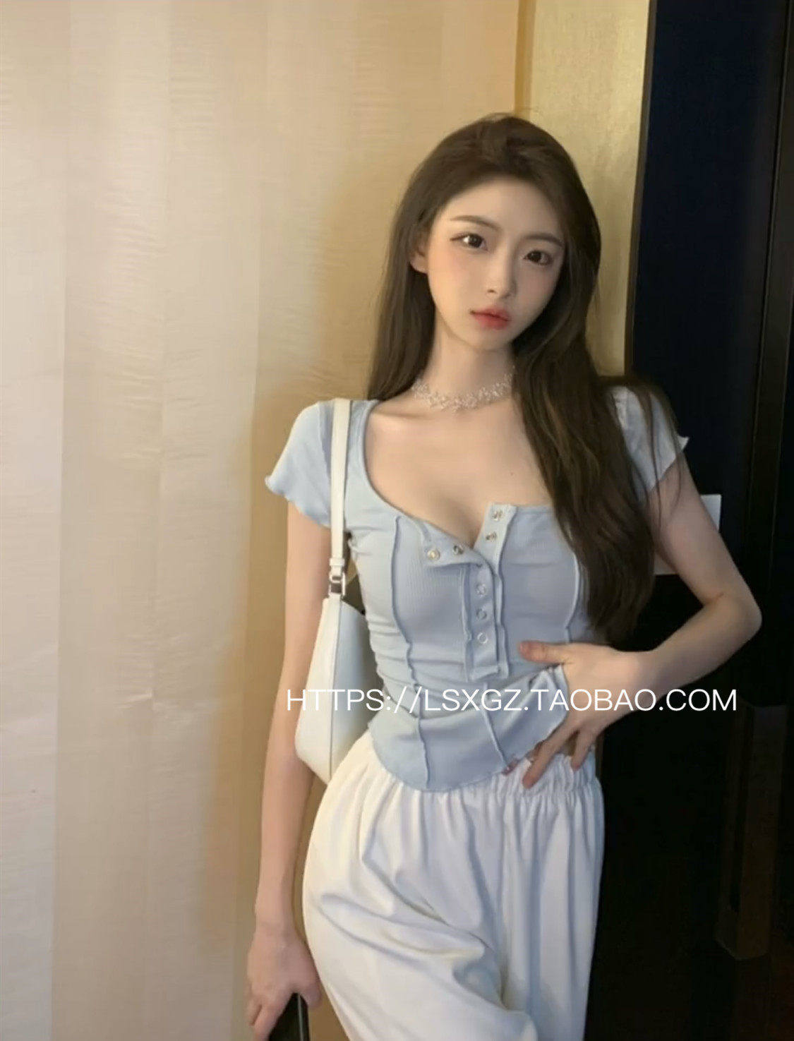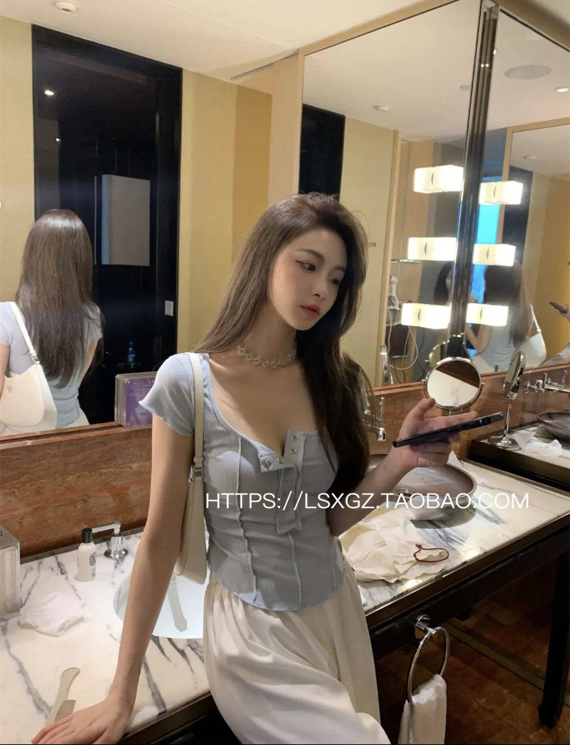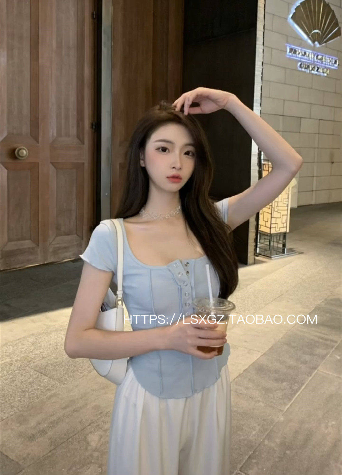 Hot Girl U-Neck Short-Sleeve T-Shirt for Women, Spring 2026 New Style, Super Popular European Fashion, Slim Fit, Flattering, Versatile, Waist-Cinching Short Top