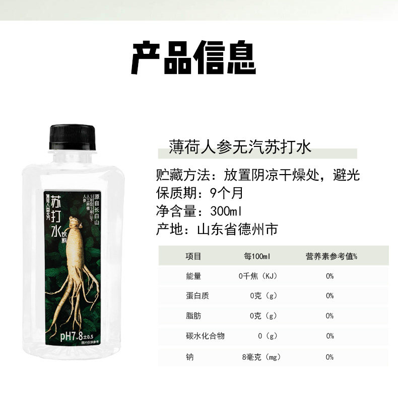 Zuozuzhi mint and ginseng still soda water weakly alkaline herbal summer refreshing mint drink soda water