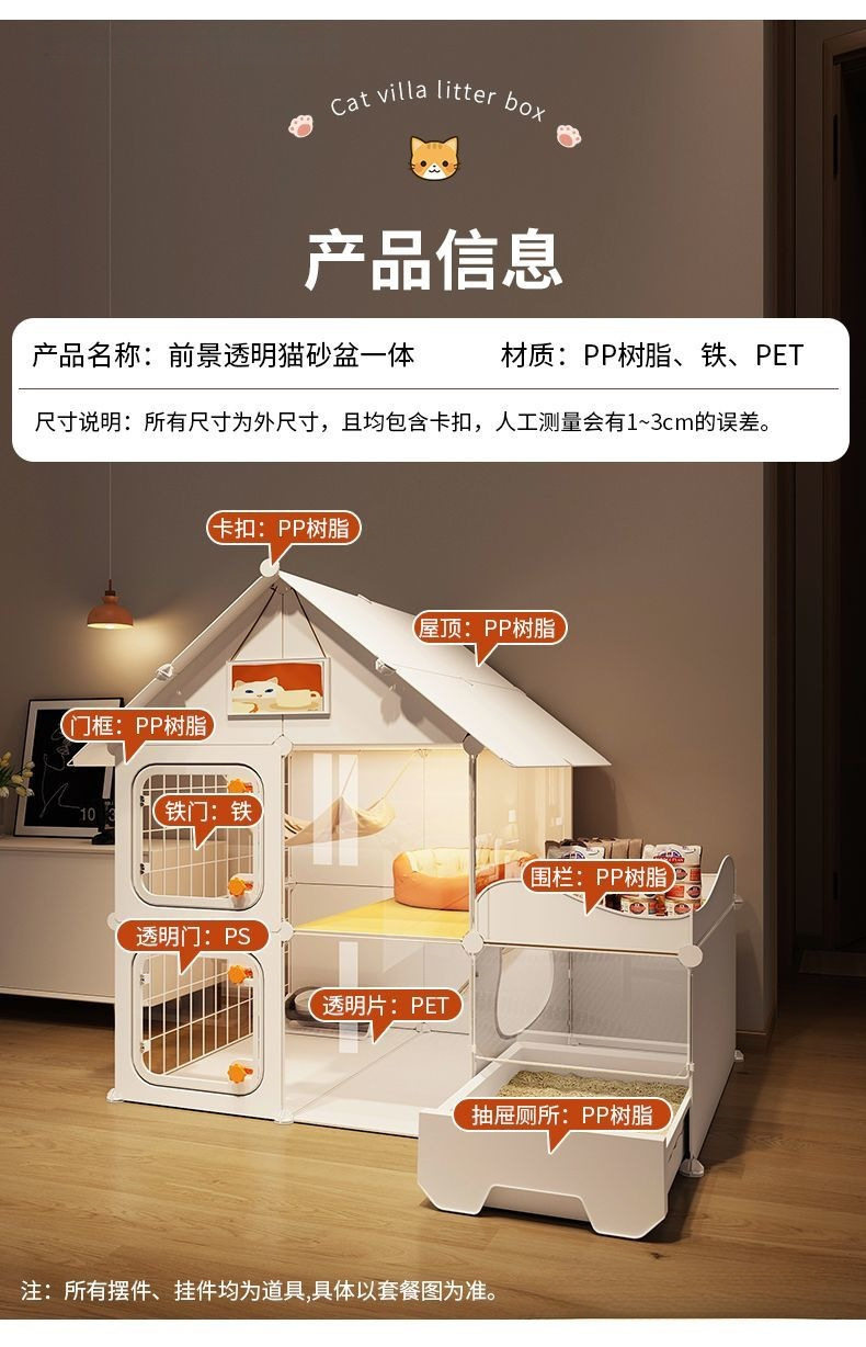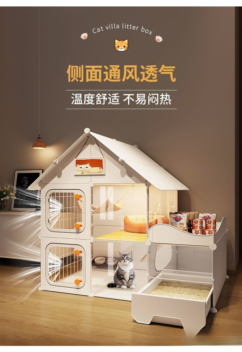 Household extra large free space indoor cat cage cat villa with cat litter box toilet one bedroom one living room one bathroom