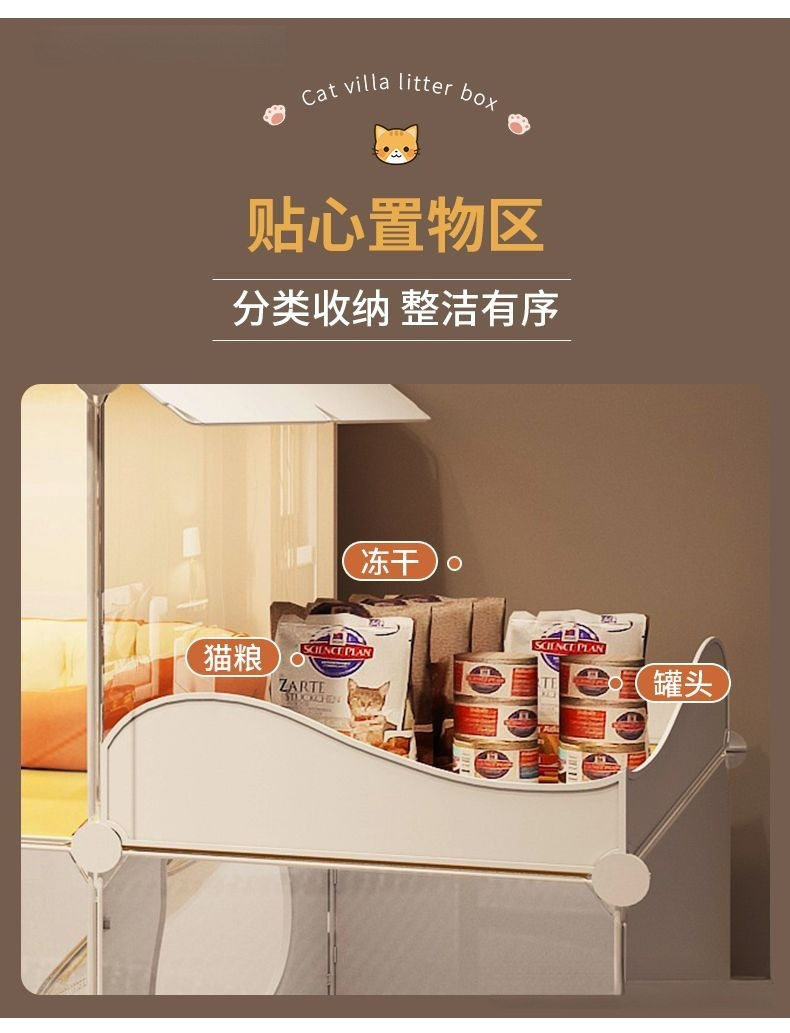 Sort by color Basic model: naked cage + cat litter box + cat litter scoop + cat teasing stick,Lighting model basic model + remote control small round light,Upgraded model basic model + cat nest + cat bowl