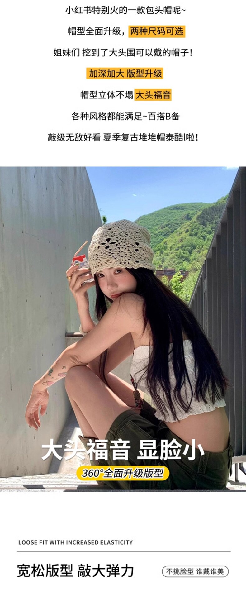 Knitted Beanie Hat for Women, Autumn and Winter Style, Same Style as Ju Jingyi, Thin Version, Large Head Circumference, Makes Face Look Smaller, Hollow Design, Versatile Headwrap Hat