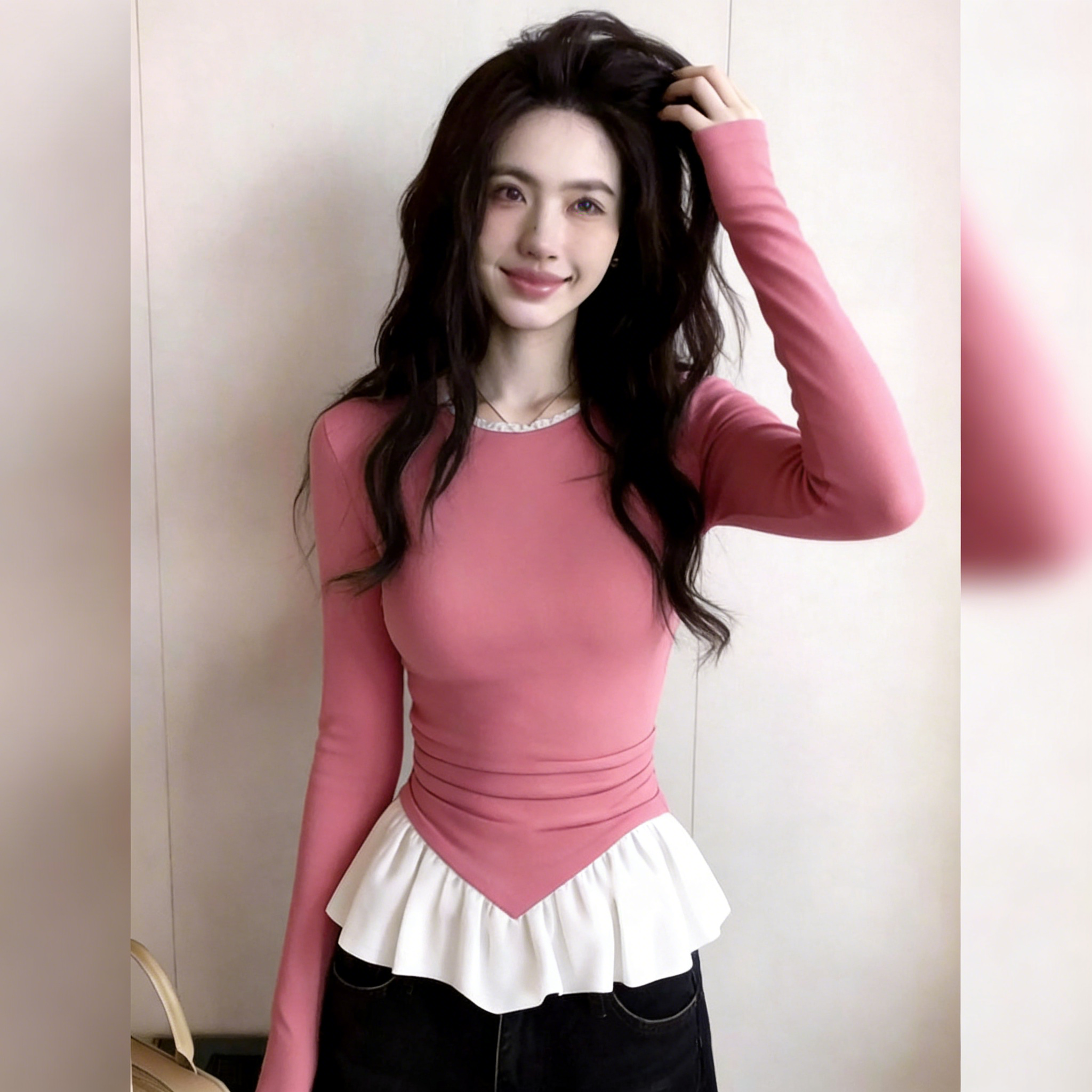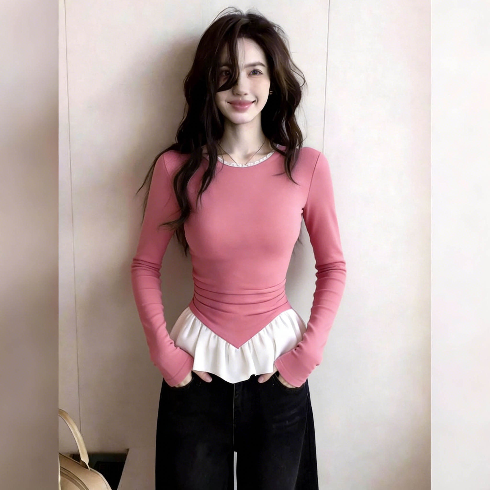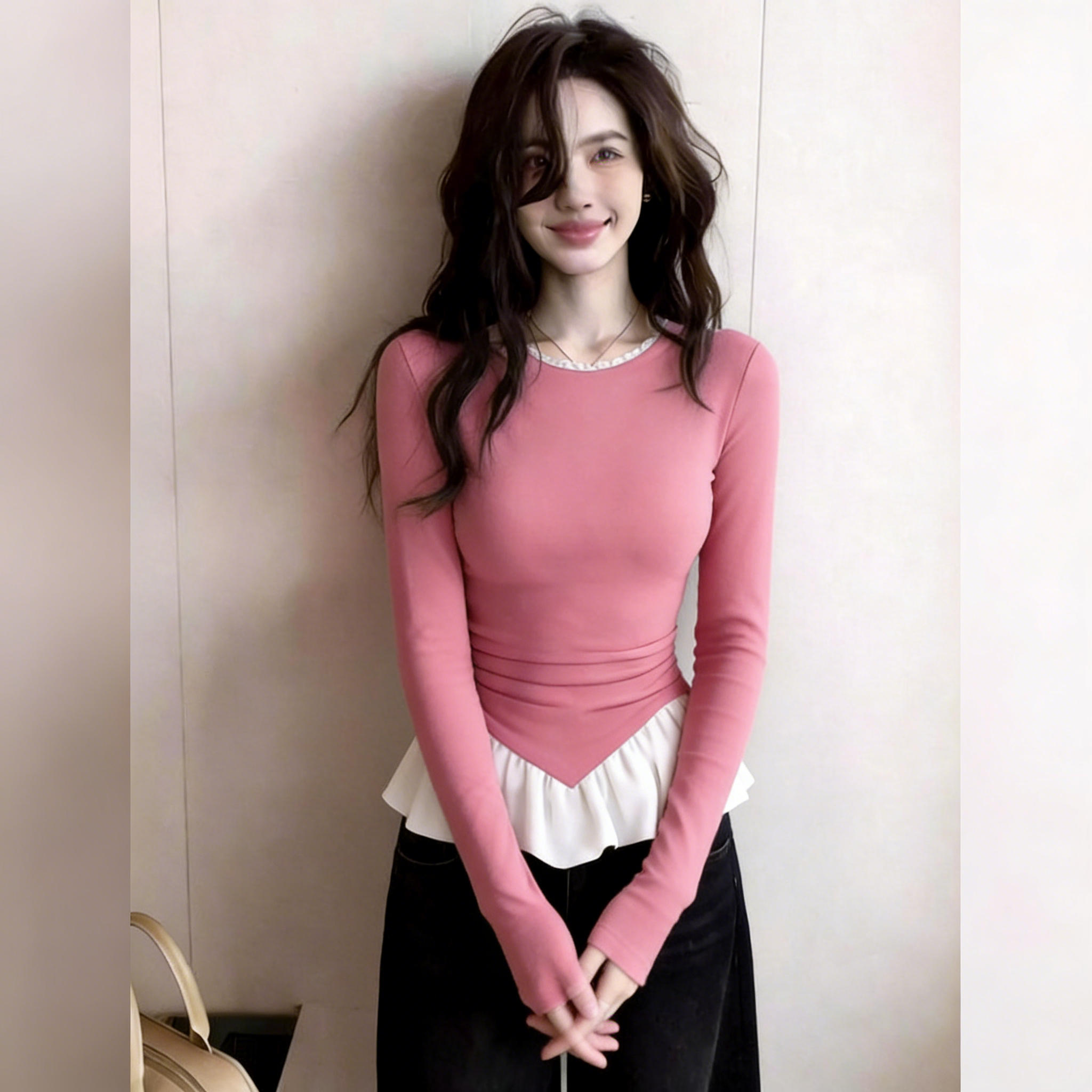 (in Stock) Youthful and Age-Reducing Pink Top for Women, Versatile and Stylish, Early Spring 2026 Slim-Fit Slimming Base Shirt Trendy