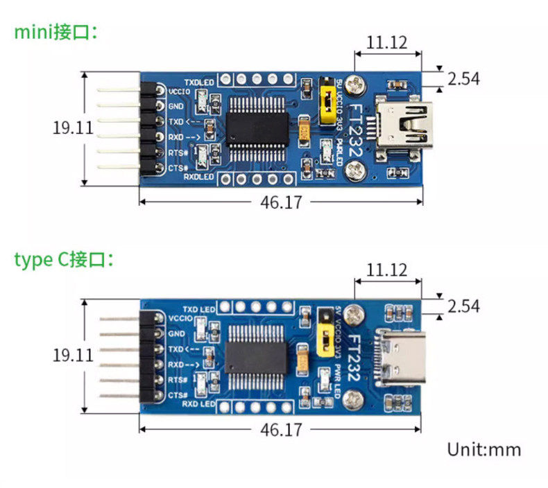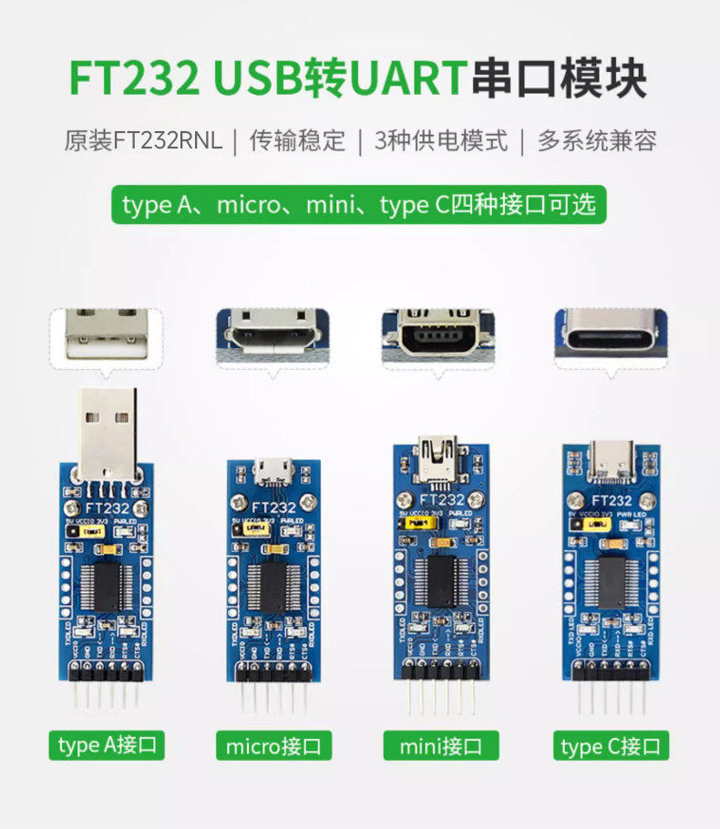 Color Classification Type a Interface,Mini Interface,Micro Interface,Type C Interface,Ft232 Serial Port Module Industrial Grade with Case