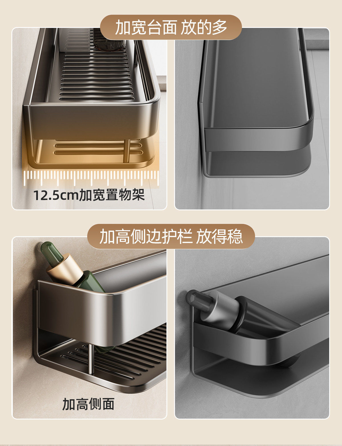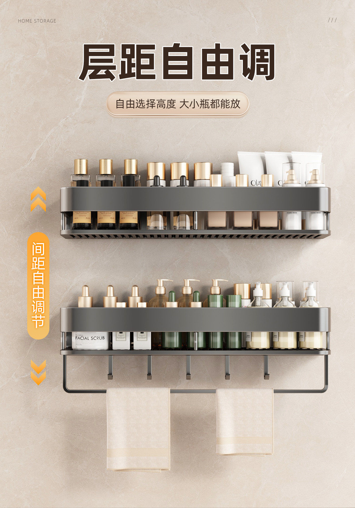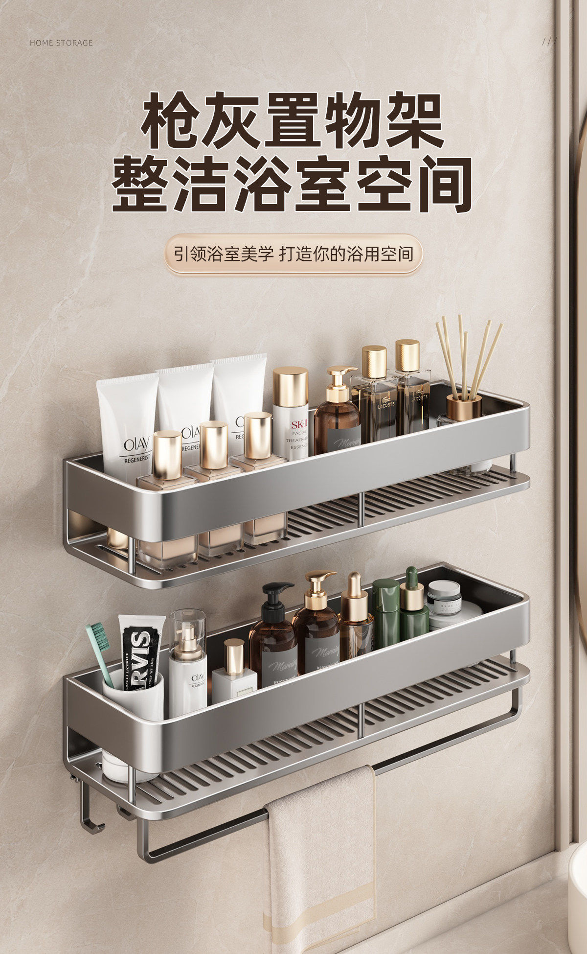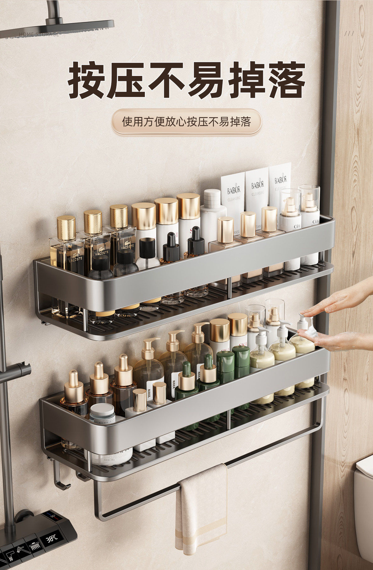 German High-End Bathroom Storage Rack, No-Drill Wall-Mounted Washroom Toilet Vanity Storage Shelf