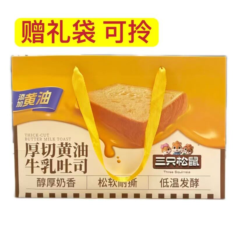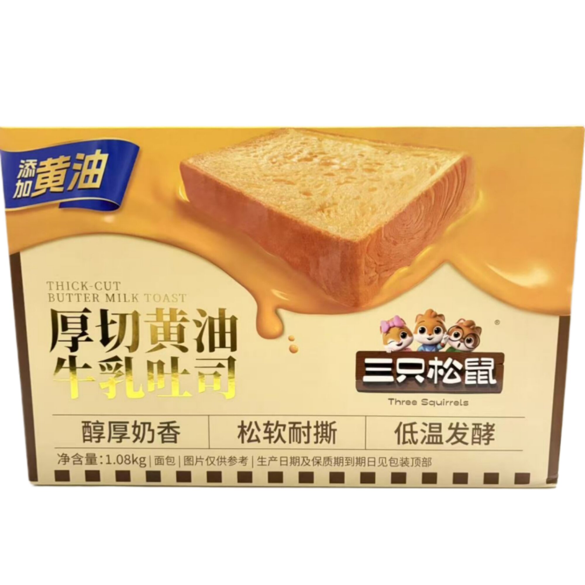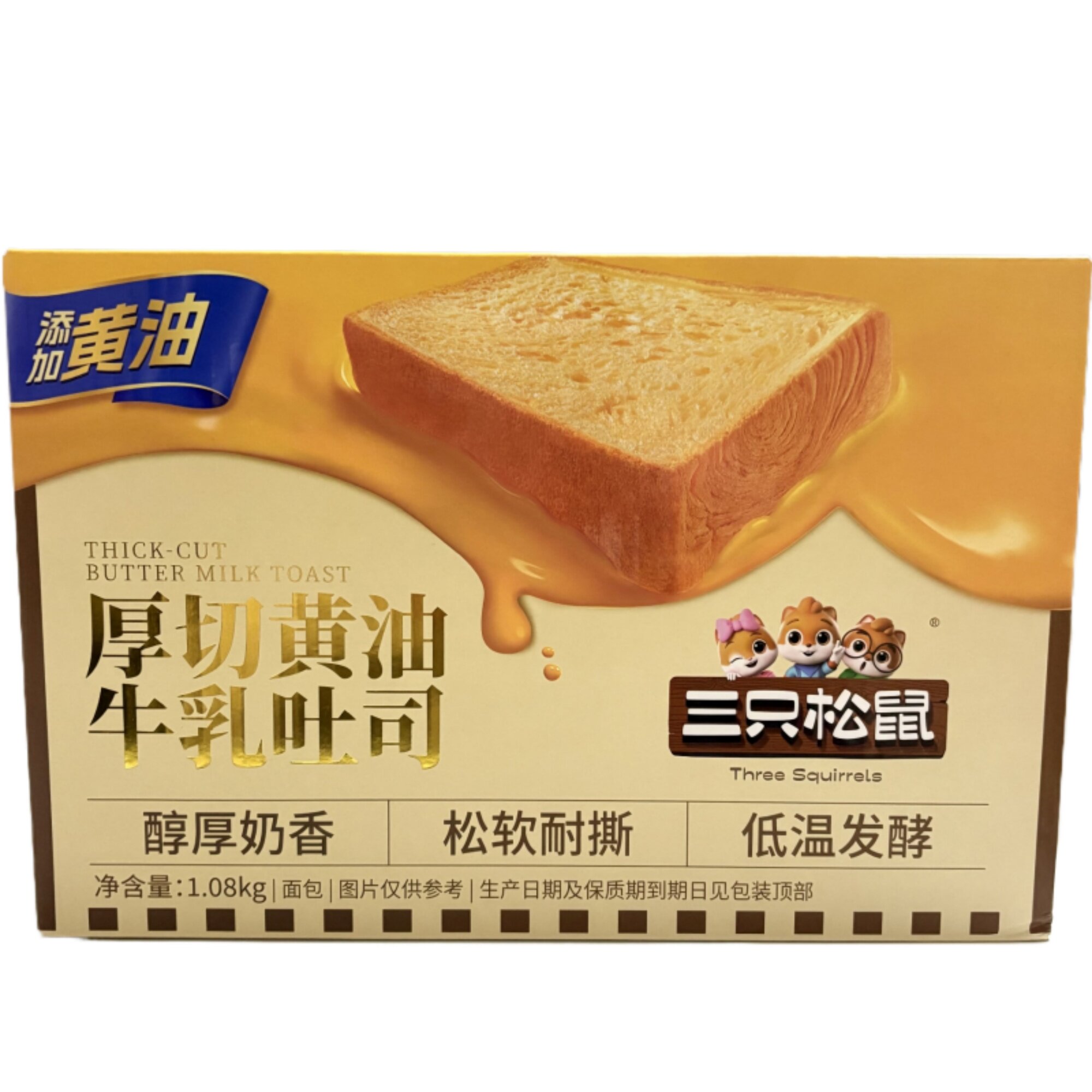 Three Squirrels Thick-Cut Butter Milk Toast 1.08kg Rich Milk Flavor Gift Bread Snack Toast Bread
