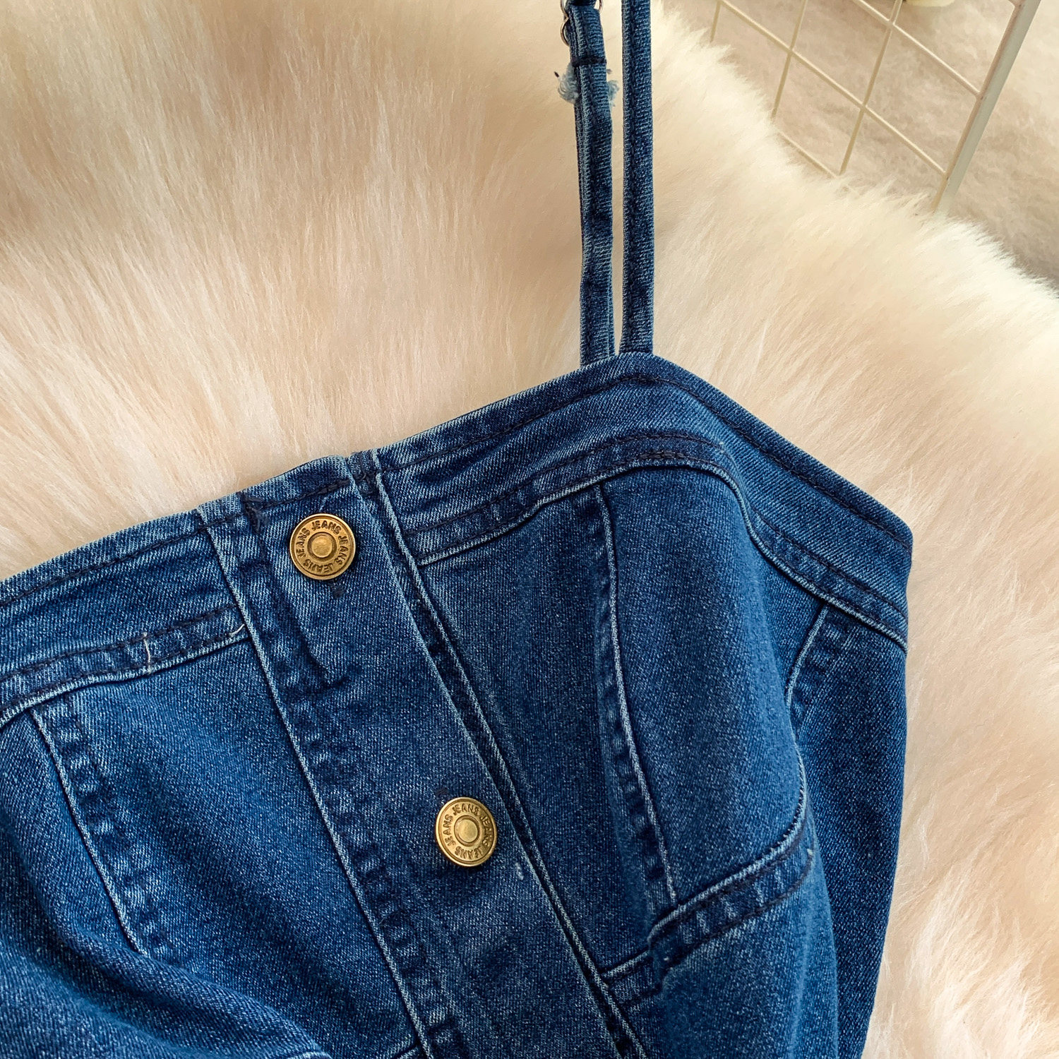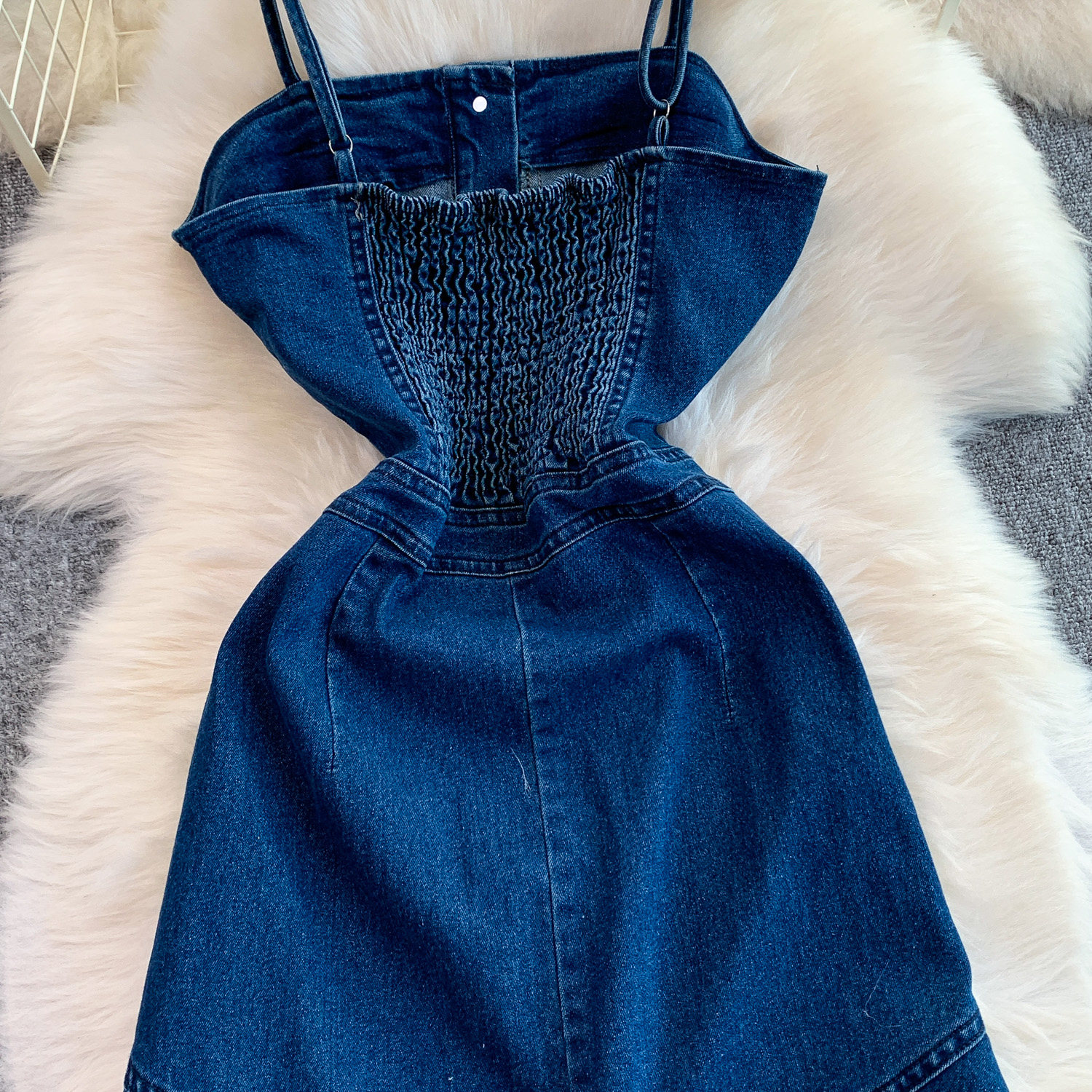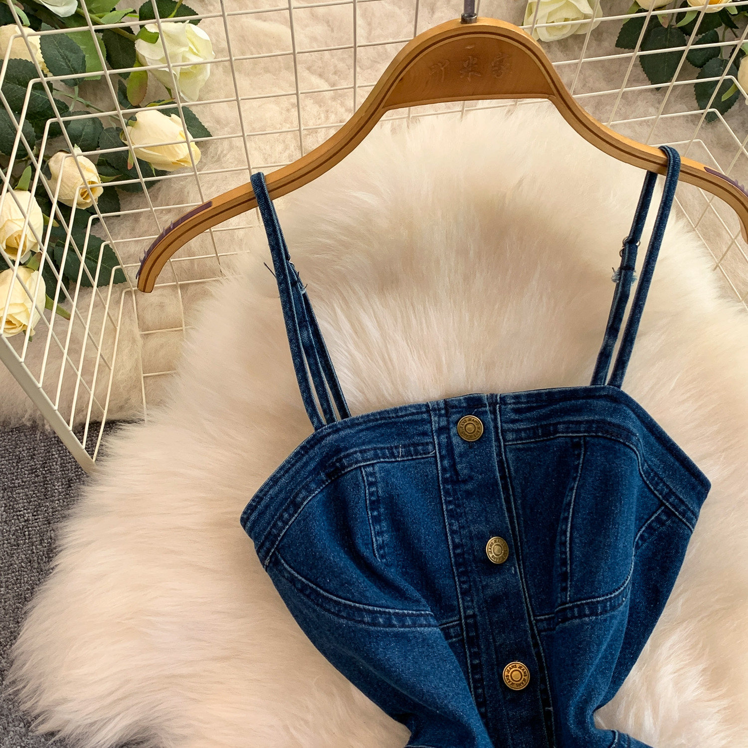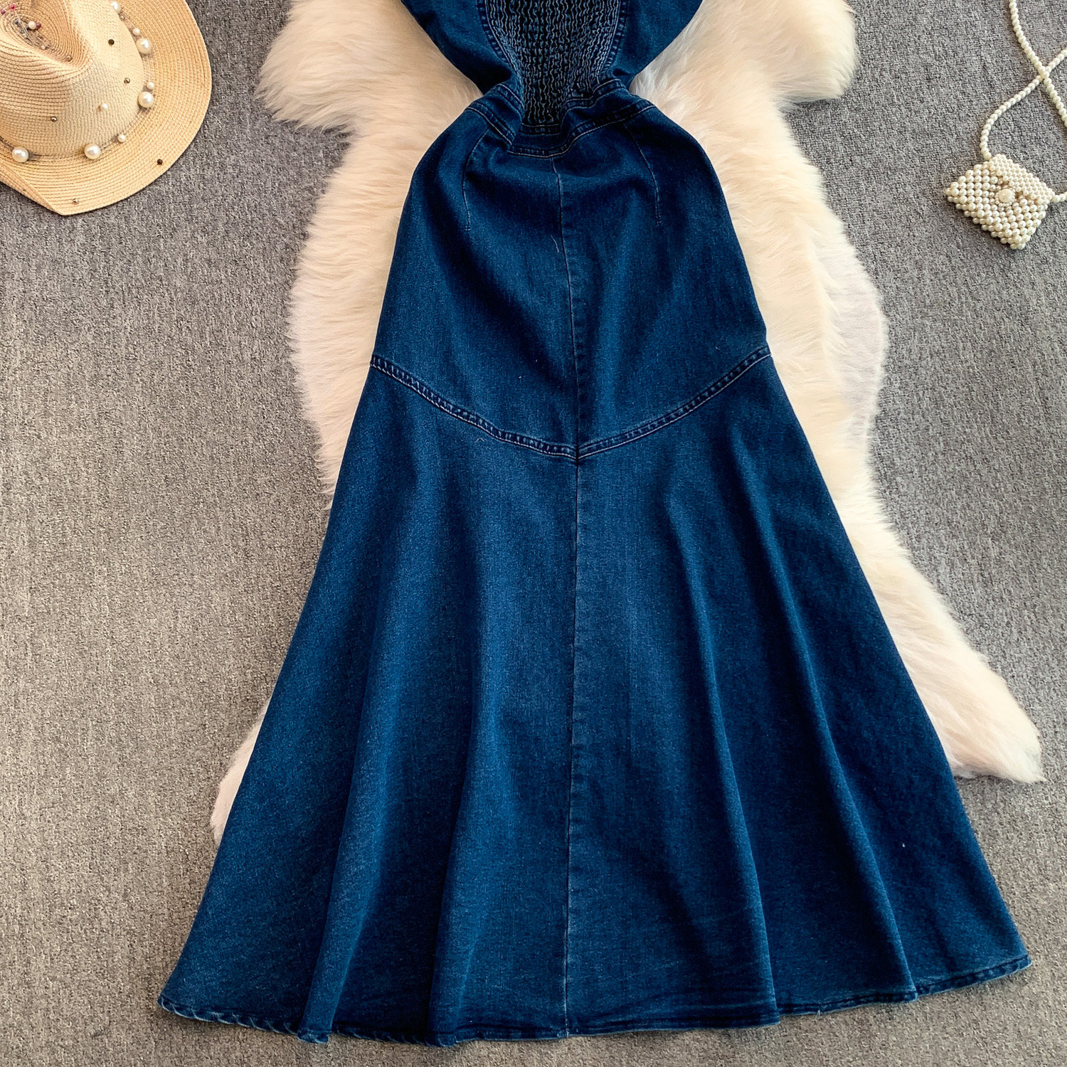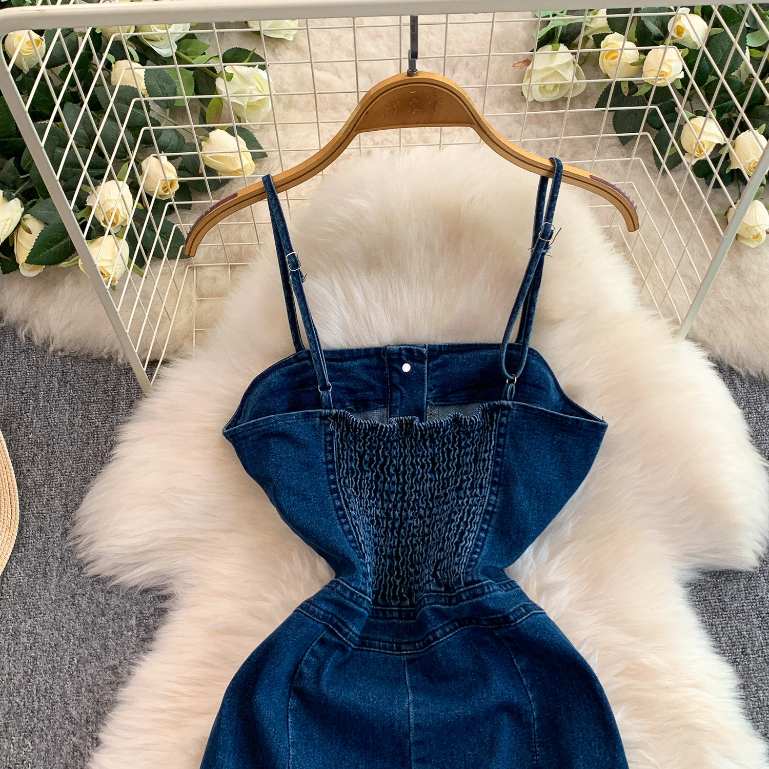 European and American Niche Goddess-Style Fashionable and Sexy Single-Breasted Denim Suspender Dress for Women, Spring and Autumn Elegant Slit Long Dress