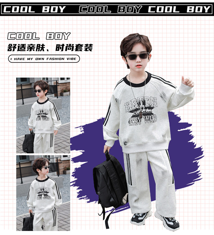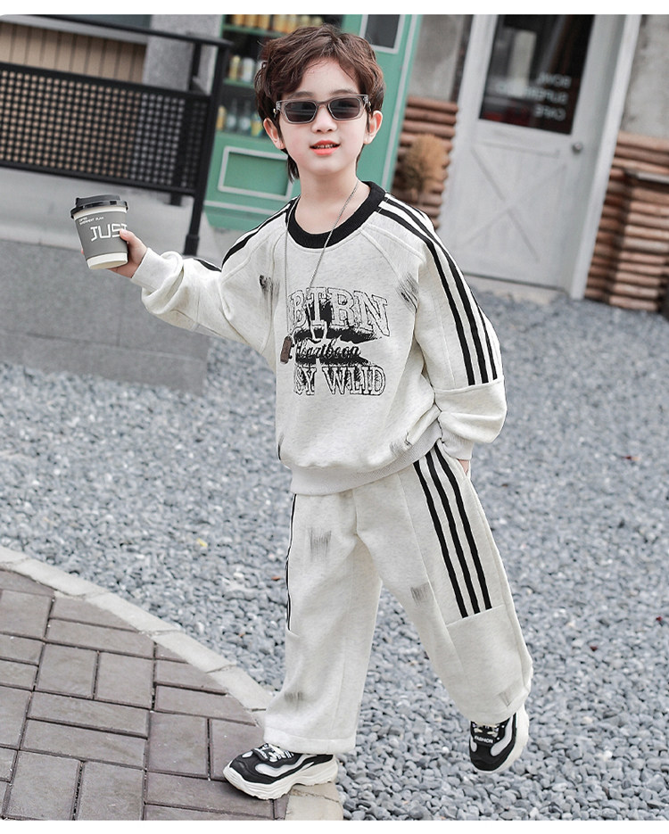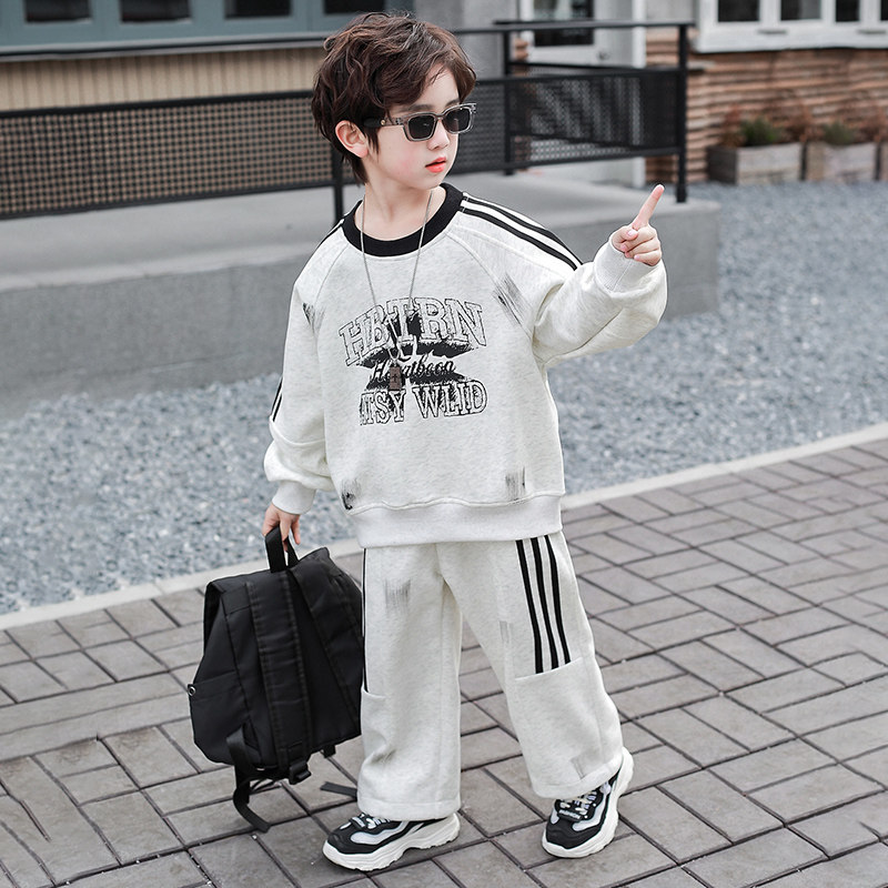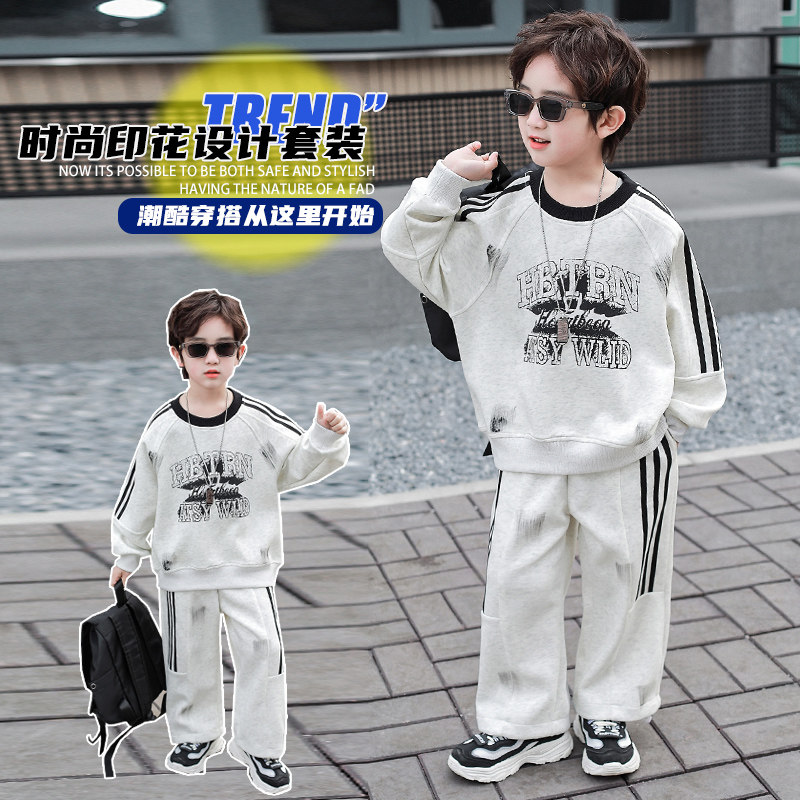 Boys' Spring and Autumn Outfit 2025 New Stylish Boys' Sports Sweatshirt Two-Piece Set Children's Autumn Casual Trendy Wear