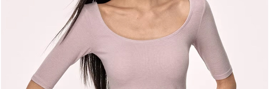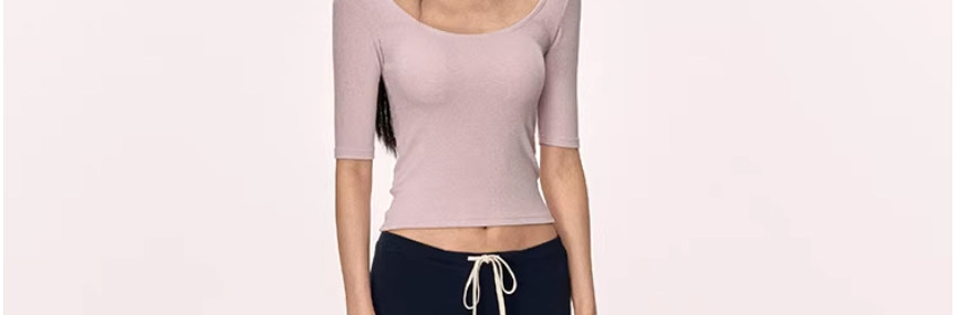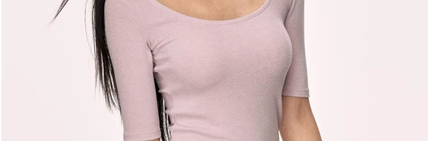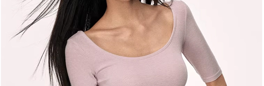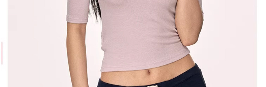 American-Style Large Round Neck Half-Sleeve T-Shirt for Women, Early Spring 2026 New Model, Spicy Girl Style, Slim Fit, Regular Shoulder, Mid-Sleeve, Tight-Fitting Top