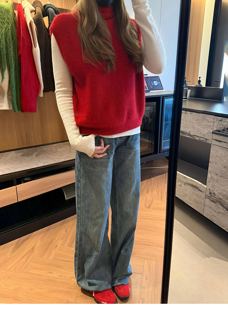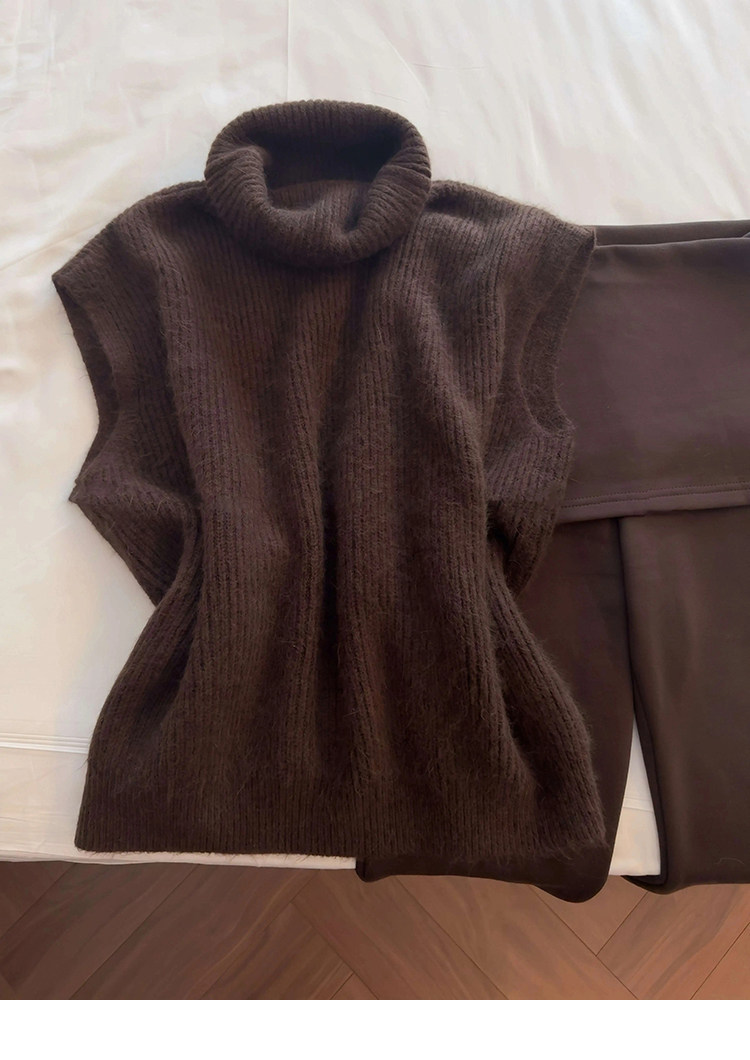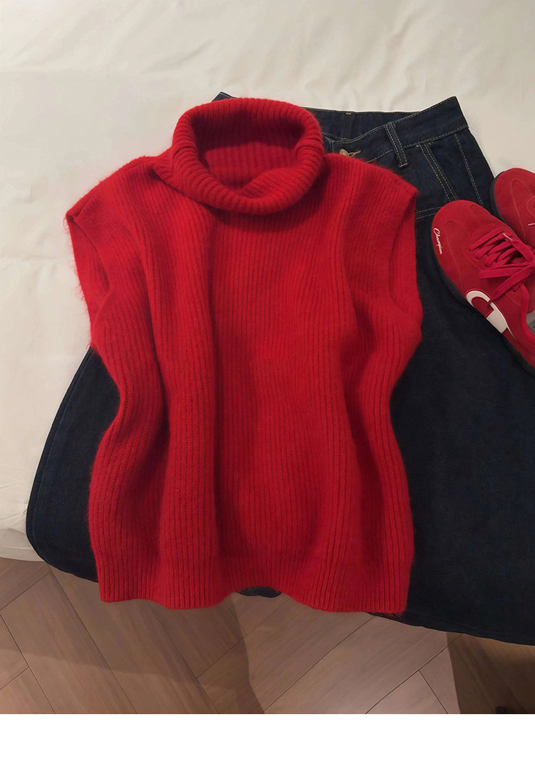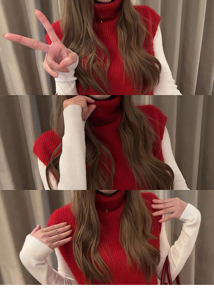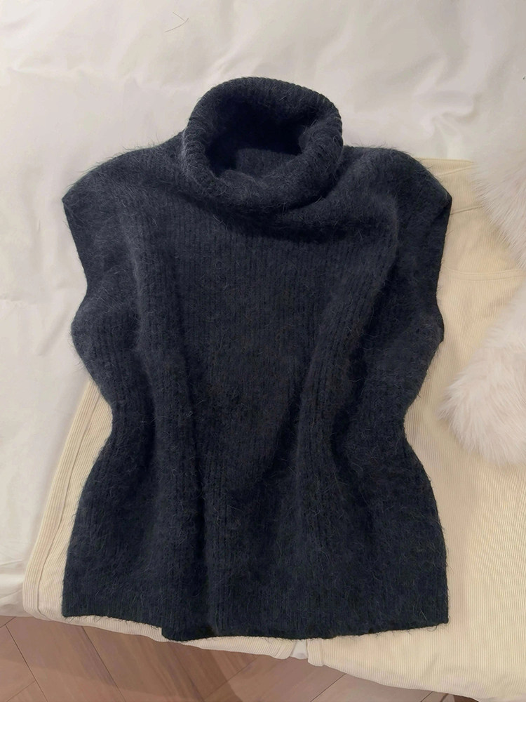 Casual Style Pile-Neck Warm Knitted Vest for Women, Autumn and Winter Korean Style Layered Sleeveless Sweater Vest with a High-End Feel