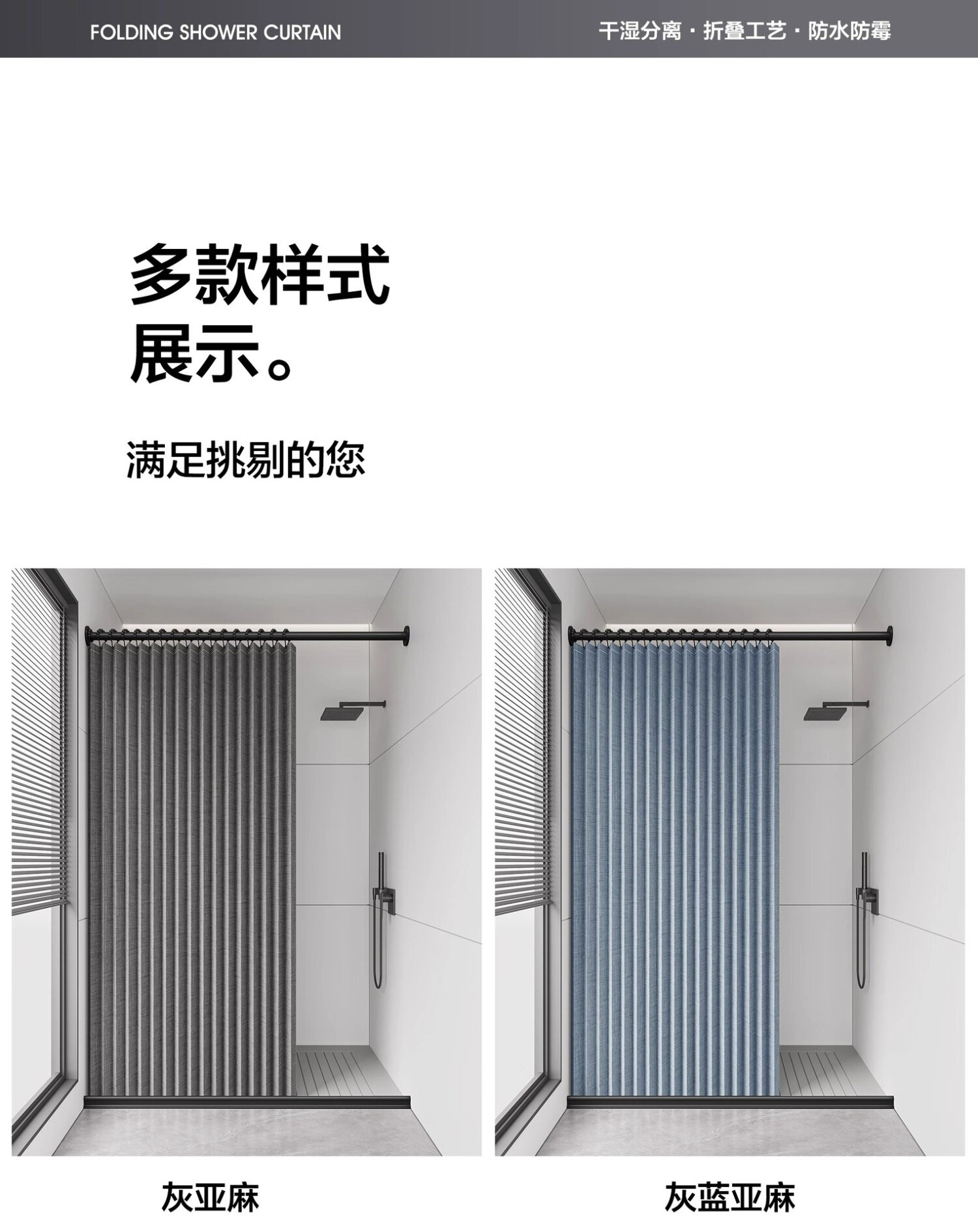 Bathroom Magnetic Waterproof Fabric Folding Shower Curtain Set, No-Drill Waterproof Dry-Wet Separation Partition for Bathroom