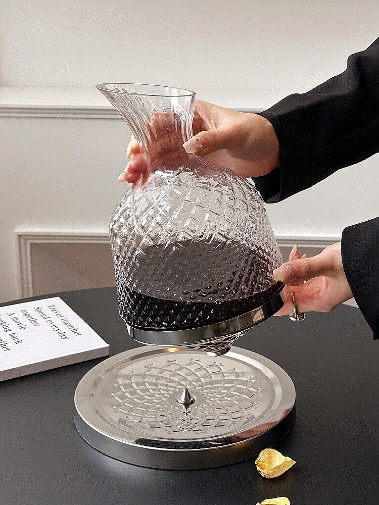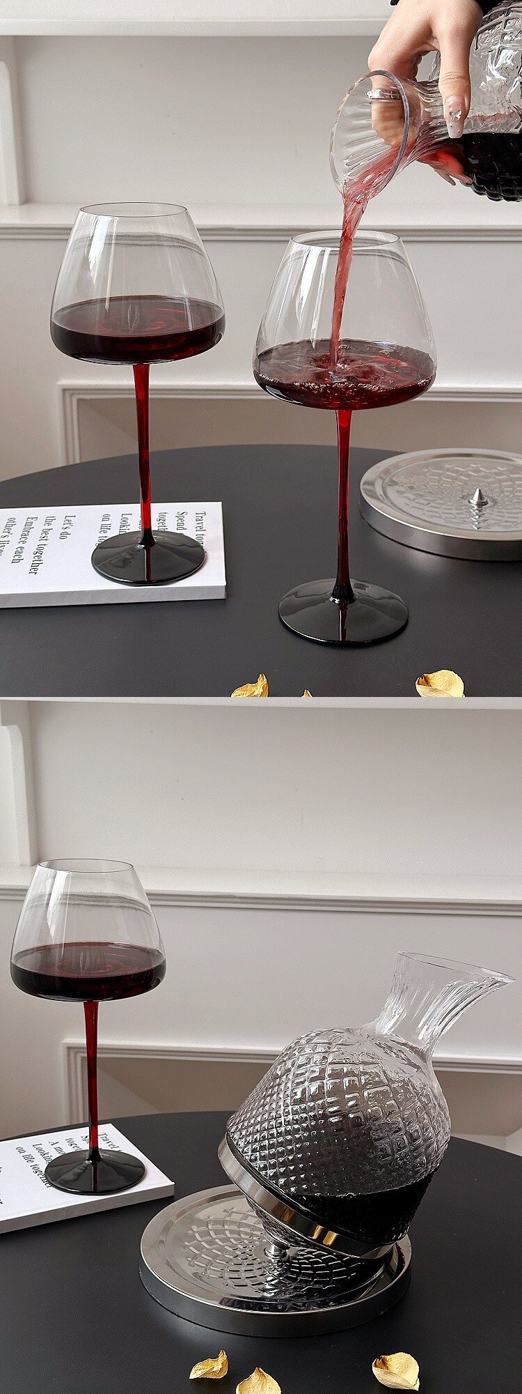 Color Classification Tumbler Rotating Pot,Black Wine Glasses (Set of 2) + Tumbler Rotating Decanter