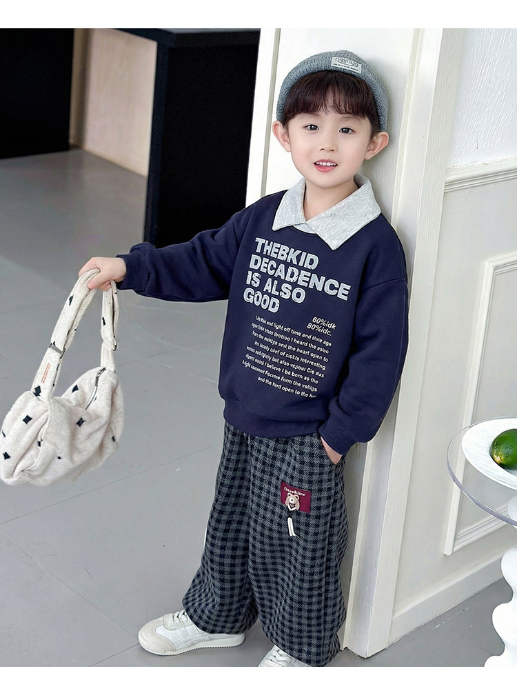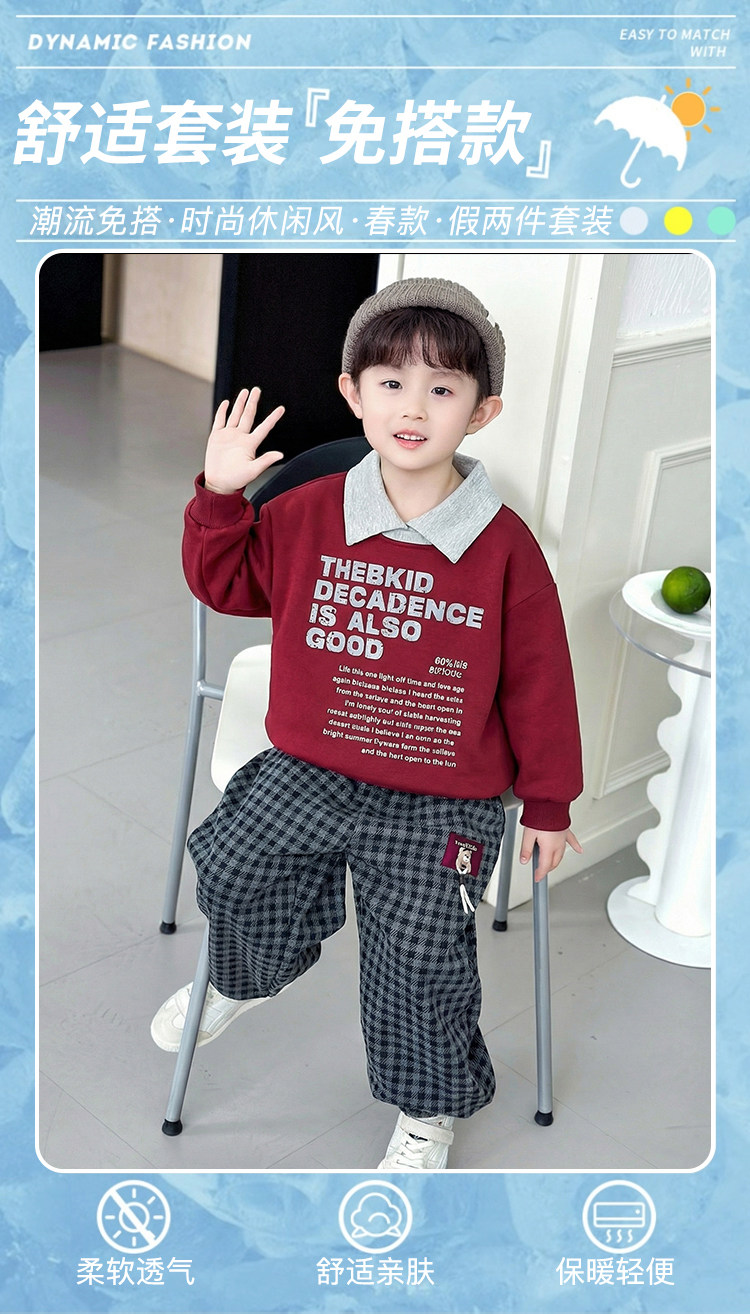 Boys' Spring and Autumn Stylish Outfit 2026 New Model Children's Cool Casual Sweatshirt Two-Piece Set Trendy Boys' Fashion Clothing