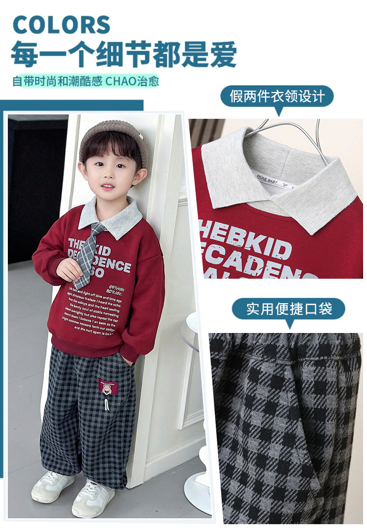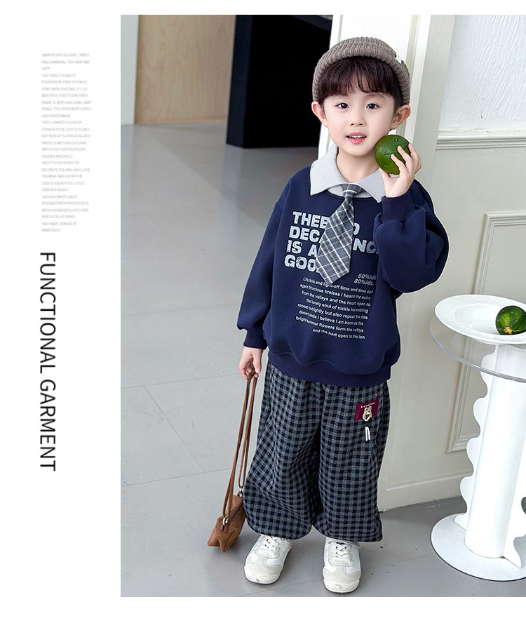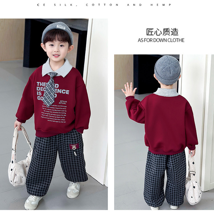 Color Classification Red-Tie Sweatshirt Suit,Navy Blue-Tie Sweatshirt Suit