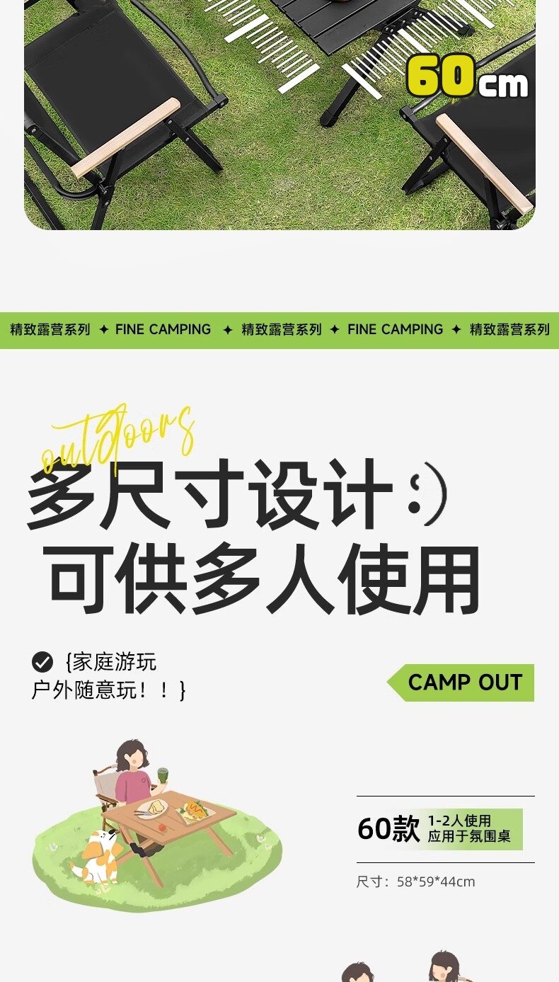 Lulinke Camping Table and Chair Set, Egg Roll Table, Camping Picnic Outdoor Folding Table and Chair Combo