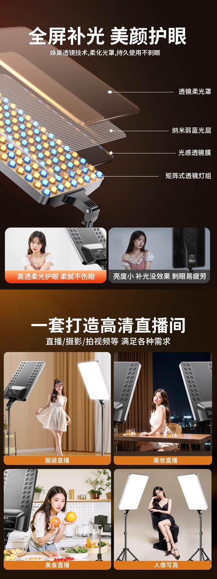 Led Fill Light for Streamers, Professional Photography Panel Light for Indoor Square Portrait Shooting